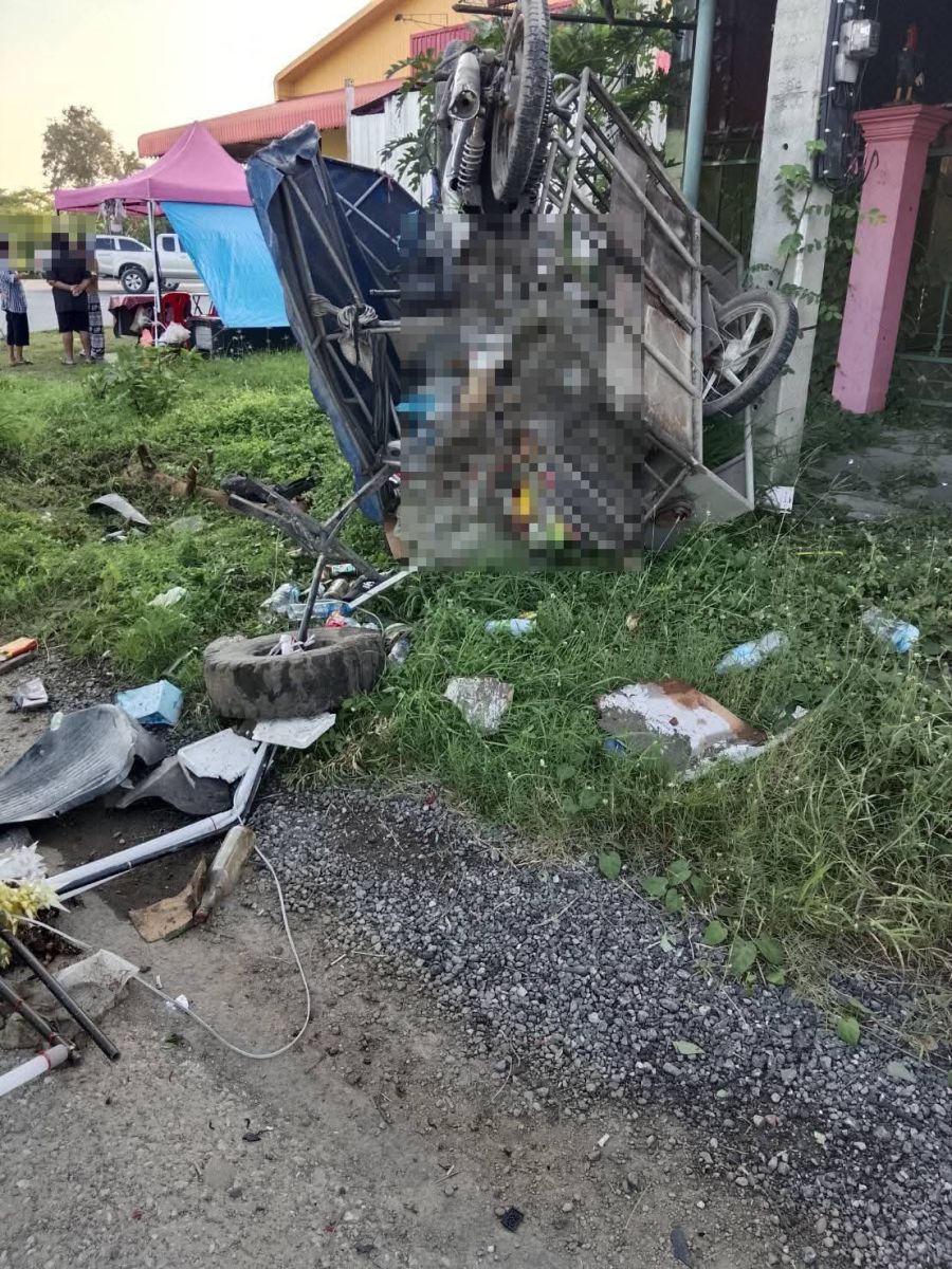 รถกระบะชนกับรถจักรยานยนต์พ่วงข้าง มีผู้บาดเจ็บสาหัส 1 รายและเสียชีวิตเป็นเด็กชายวัย 10 ขวบริมถนนเพชรเกษม จ.เพชรบุรี