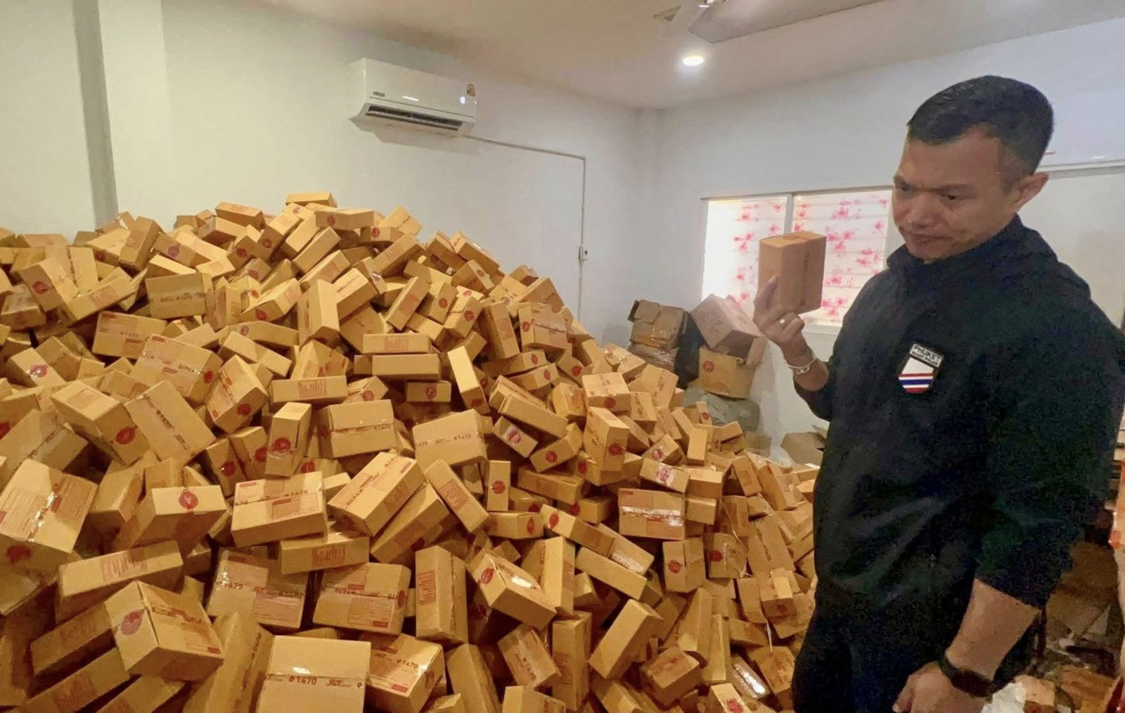 จับอดีตแม่ค้าออนไลน์ เปิดโรงงานย่อมๆ แพ็กพัสดุหลอกเก็บเงินปลายทางทั่วประเทศ ยึดของกลางกว่า 20,000 ชิ้น เงินหมุนวันละ 8 หมื่นบาท