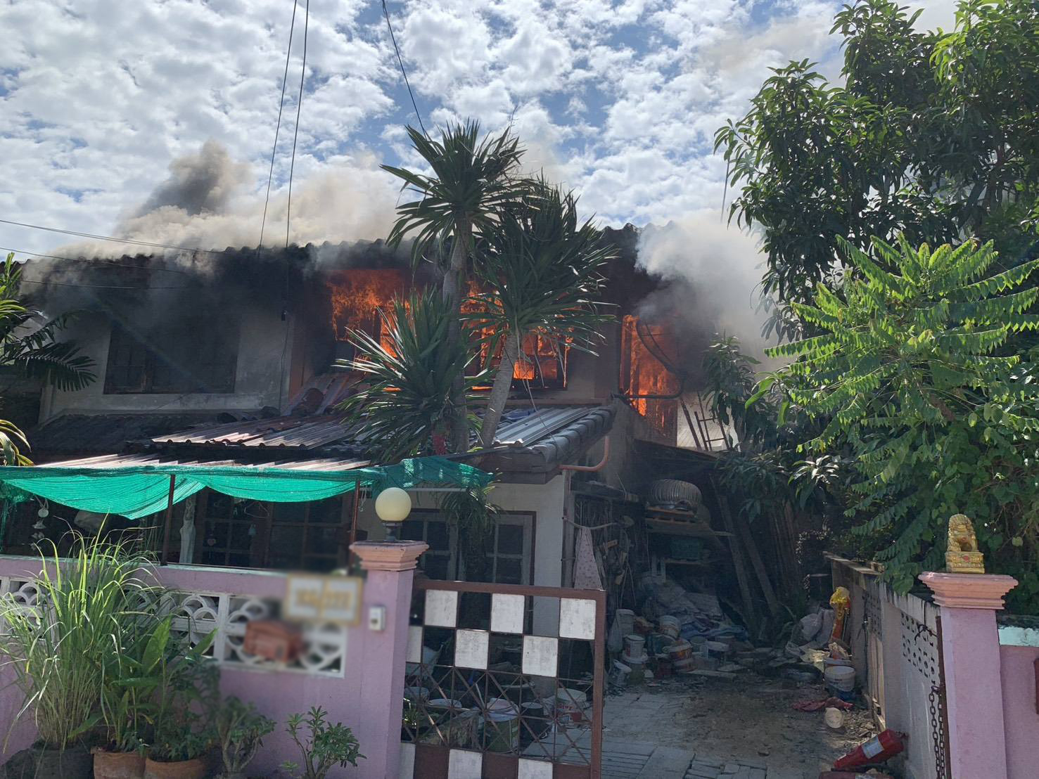 ลักษณะที่เกิดเหตุเป็นบ้านแฝด 2 ชั้น ใช้เป็นที่พักอาศัย ต้นเพลิงเกิดขึ้นที่ชั้นบน ภายในห้องนอน เพลิงลุกไหม้ห้องนอนเสียหายทั้งหมด พื้นที่เพลิงไหม้เสียหายโดยประมาณ 24 ตารางเมตร รถดับเพลิงใช้น้ำทำการดับเพลิงสงบ