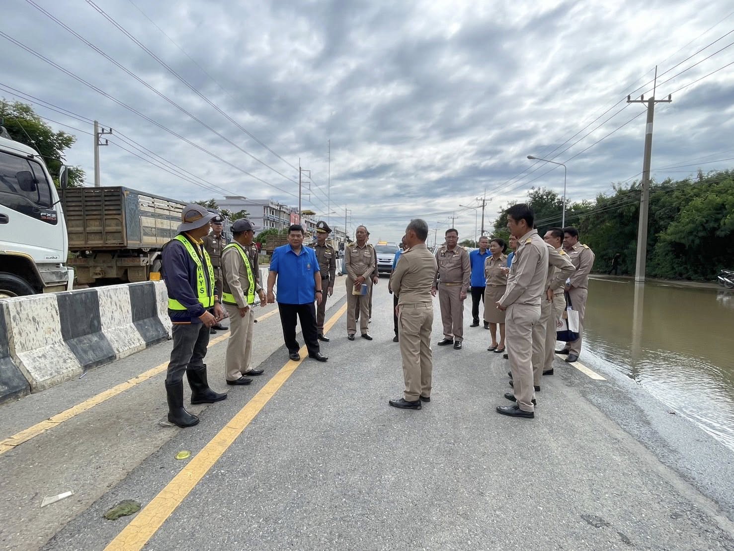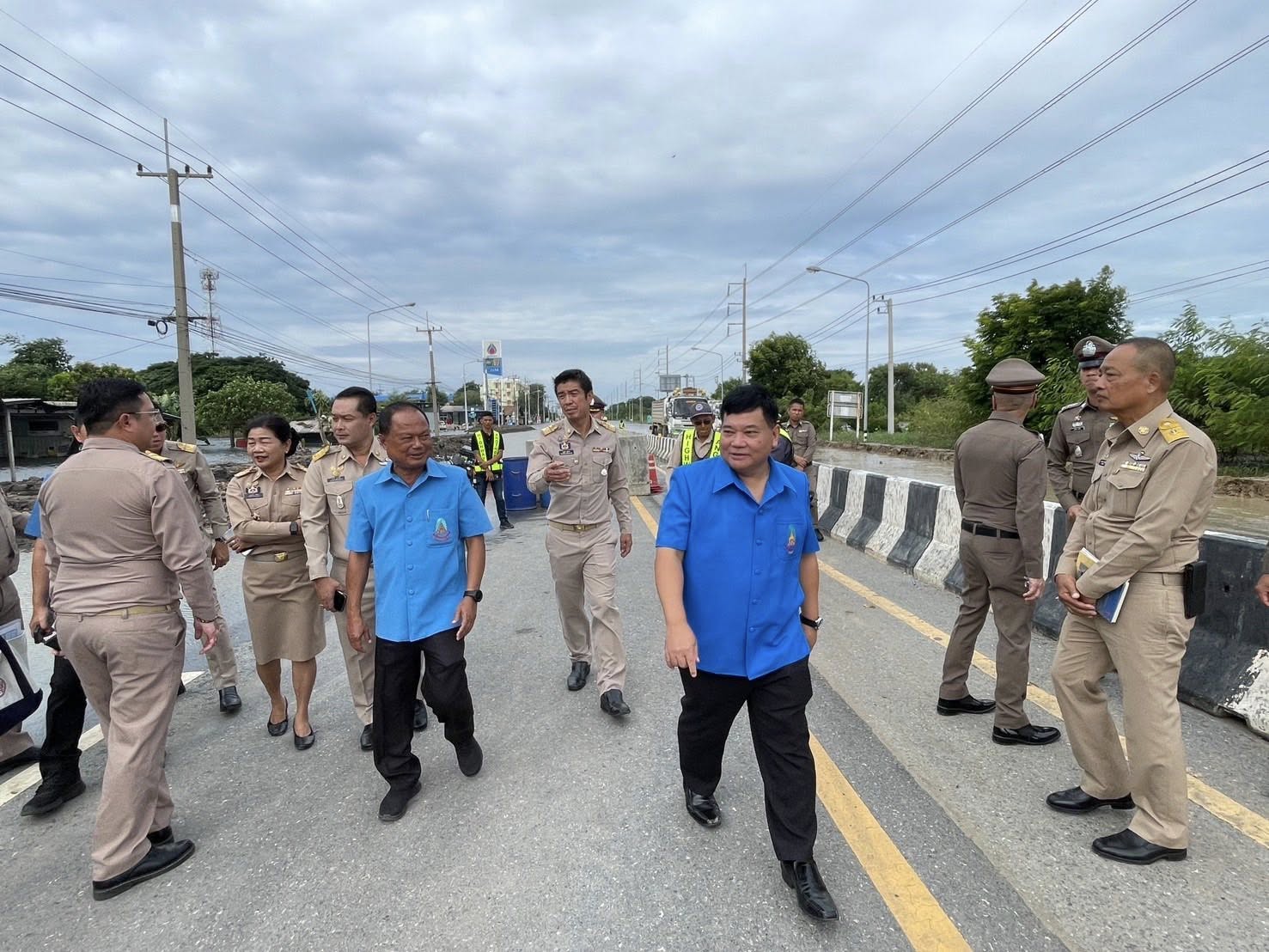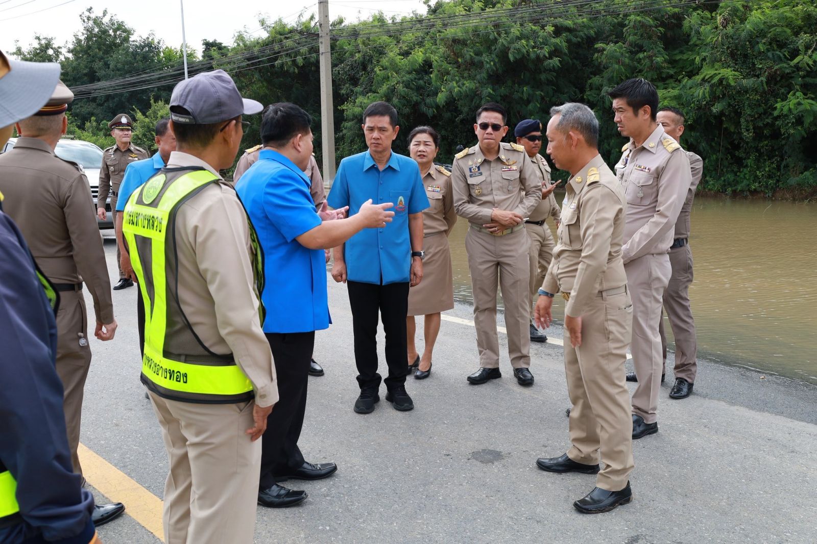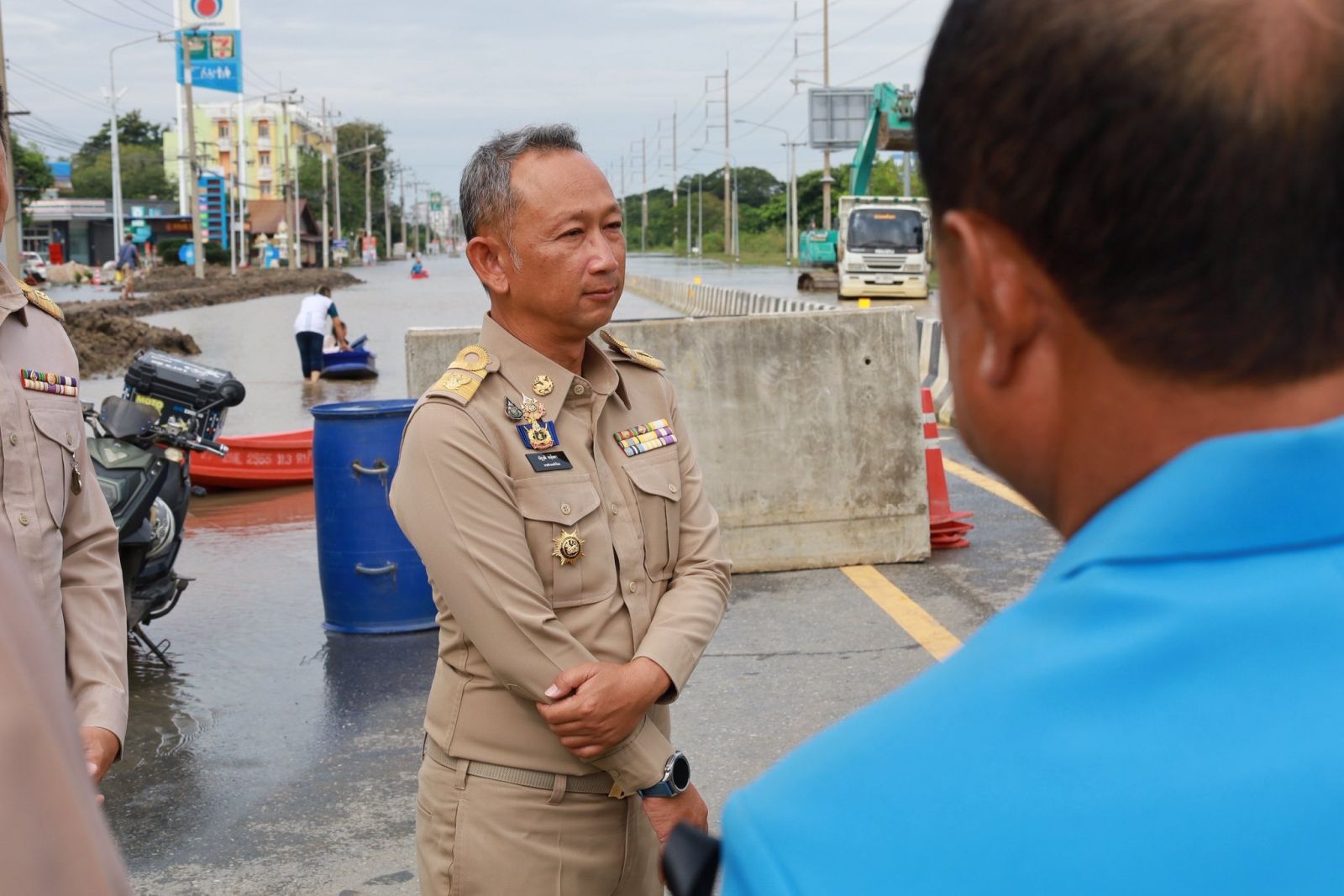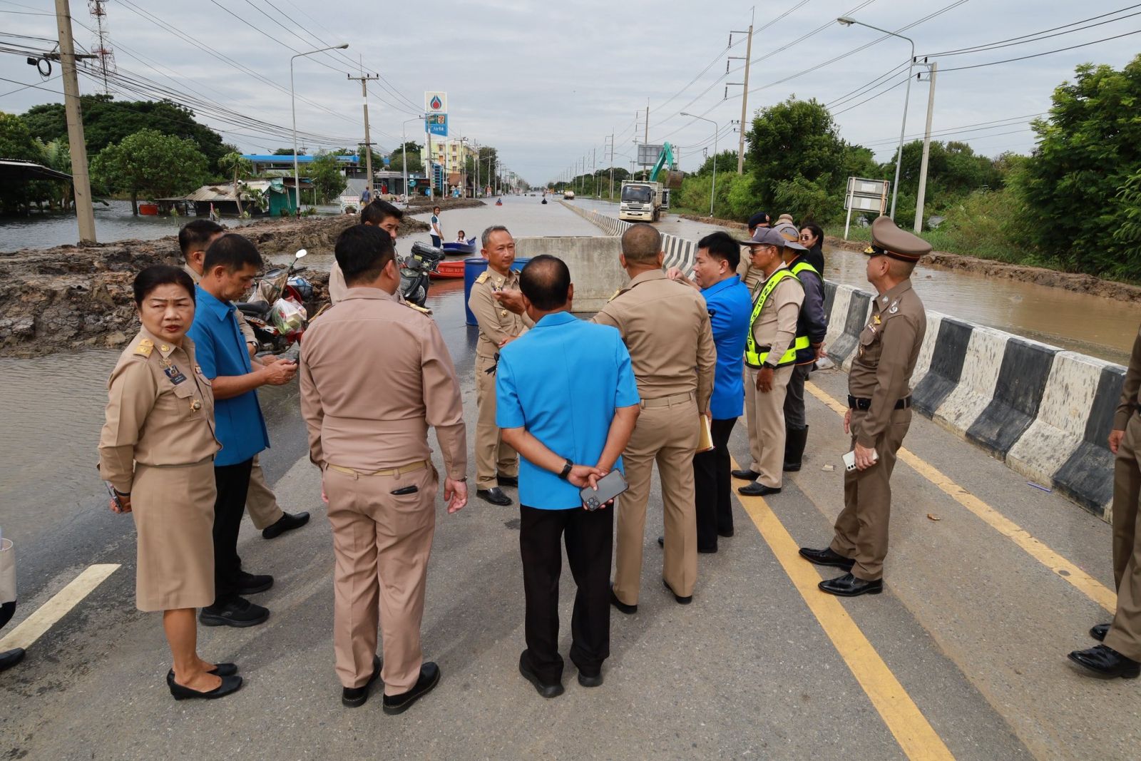 วันที่ 17 พฤศจิกายน 2568 เวลา 09.40 น. นายนที มนตริวัต ผู้ราชการจังหวัดอ่างทอง ลงพื้นที่ทางหลวงหมายเลข 33 สุพรรณบุรี-ป่าโมก-สายเอเชีย ที่มีน้ำท่วมขังผิวการจราจรบริเวณแยกหมวดการทางป่าโมก พื้นที่ อ.ป่าโมก จ.อ่างทอง ตั้งแต่ปั๊ม ปตท. ถึงหน้าหมู่บ้านทำกลอง ระดับน้ำสูง 30- 50 ซม. เป็นระยะทางประมาณ 1 กม. ส่งผลให้ยานพาหนะไม่สามารถสัญจรผ่านได้มากว่า 1 สัปดาห์