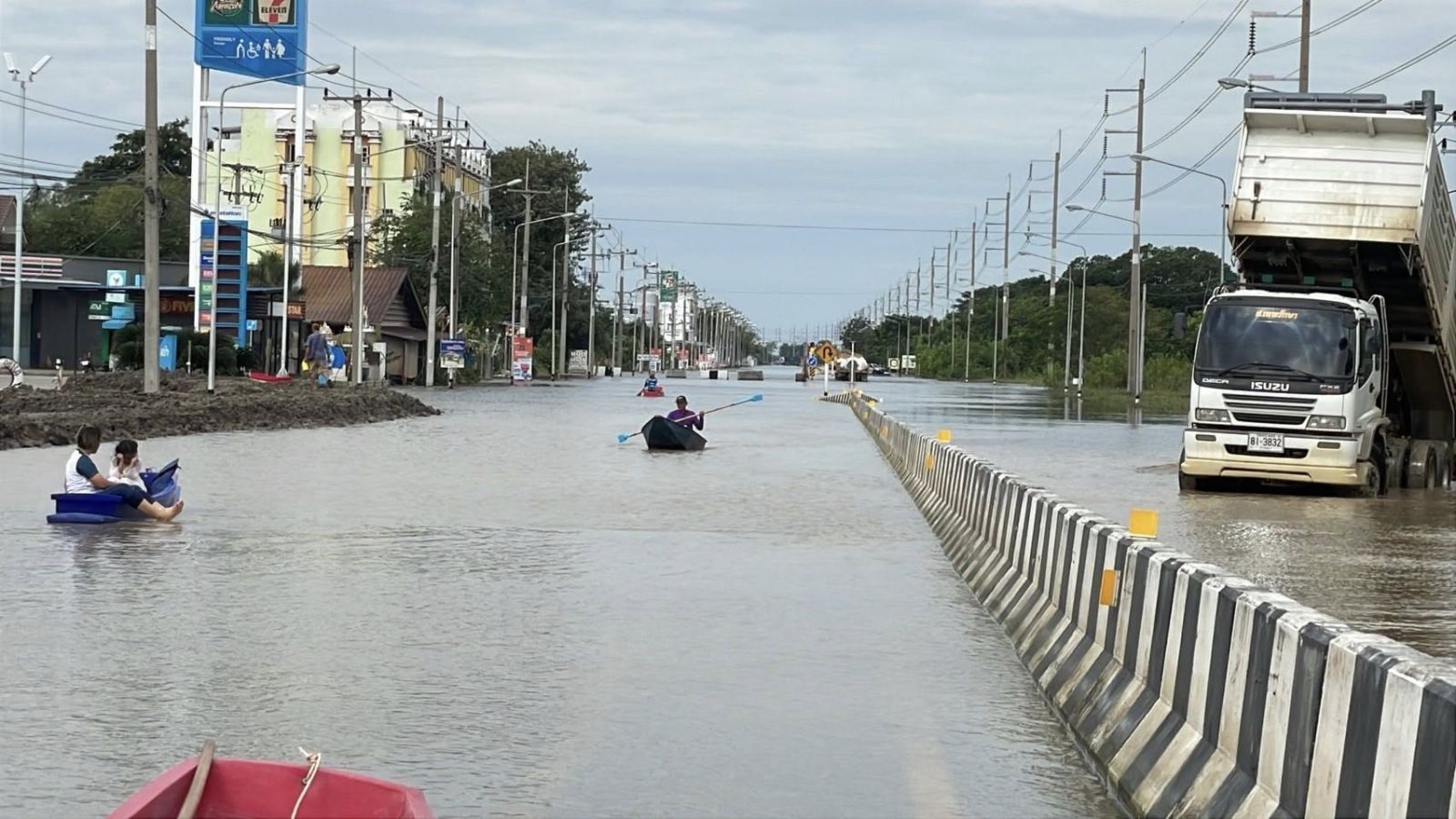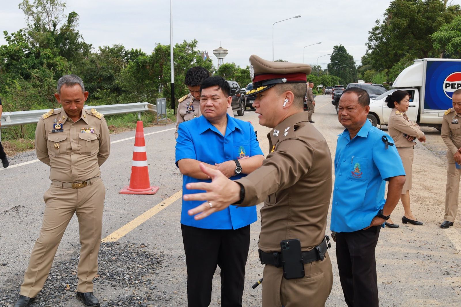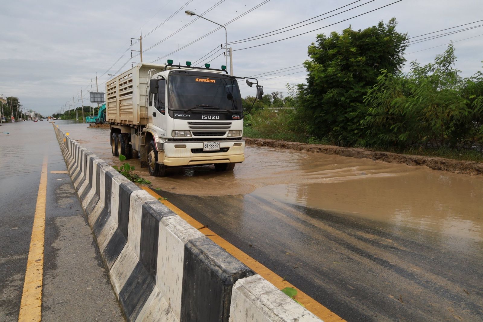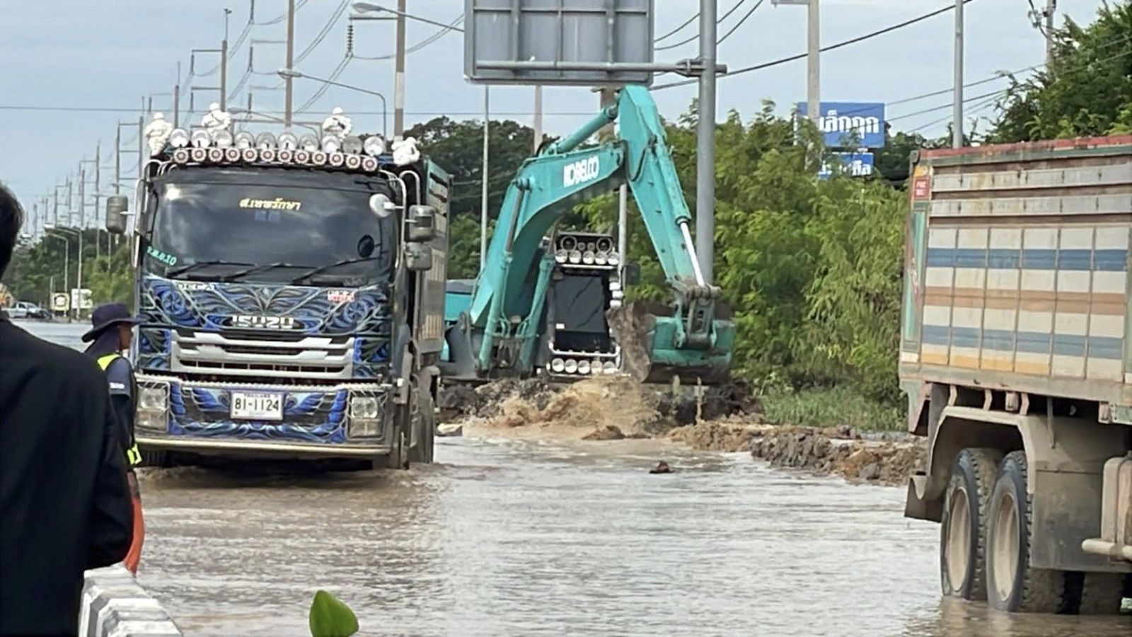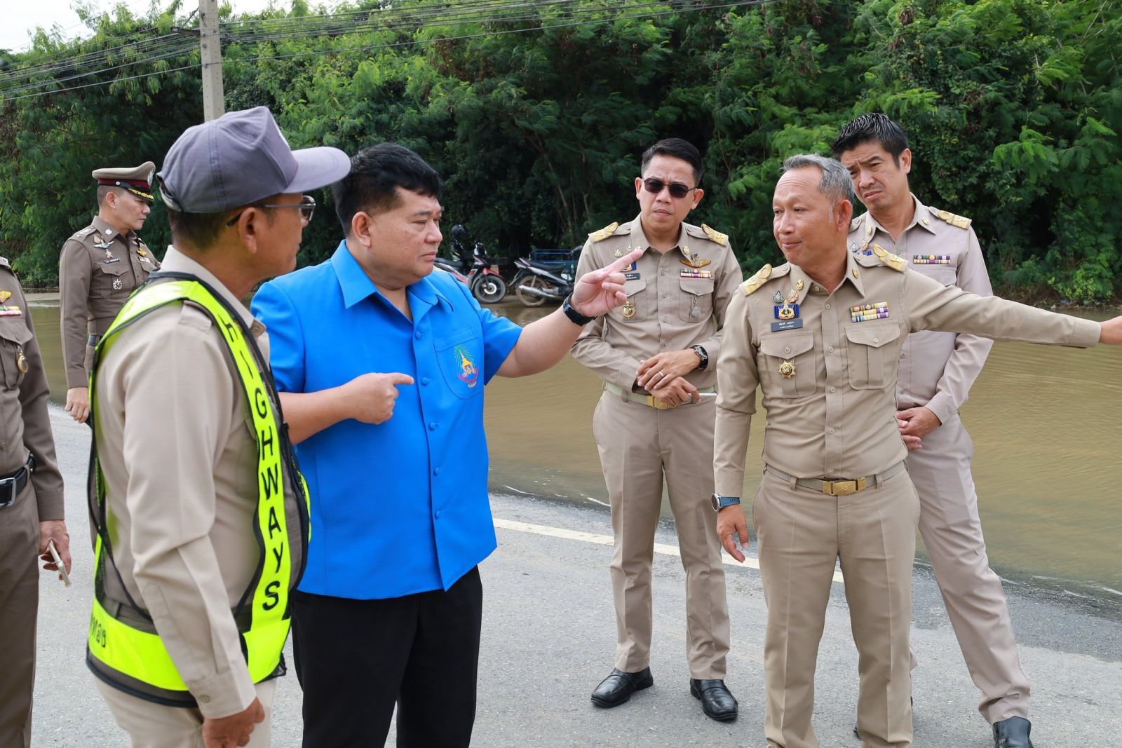 วันที่ 17 พฤศจิกายน 2568 เวลา 09.40 น. นายนที มนตริวัต ผู้ราชการจังหวัดอ่างทอง ลงพื้นที่ทางหลวงหมายเลข 33 สุพรรณบุรี-ป่าโมก-สายเอเชีย ที่มีน้ำท่วมขังผิวการจราจรบริเวณแยกหมวดการทางป่าโมก พื้นที่ อ.ป่าโมก จ.อ่างทอง ตั้งแต่ปั๊ม ปตท. ถึงหน้าหมู่บ้านทำกลอง ระดับน้ำสูง 30- 50 ซม. เป็นระยะทางประมาณ 1 กม. ส่งผลให้ยานพาหนะไม่สามารถสัญจรผ่านได้มากว่า 1 สัปดาห์