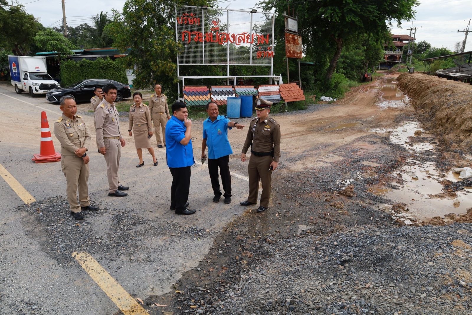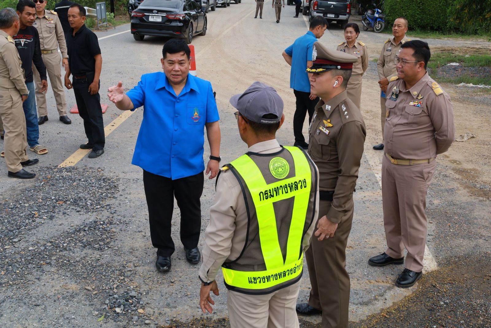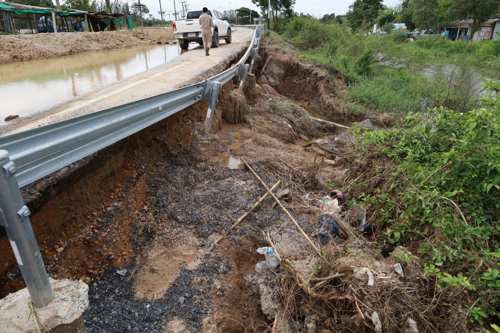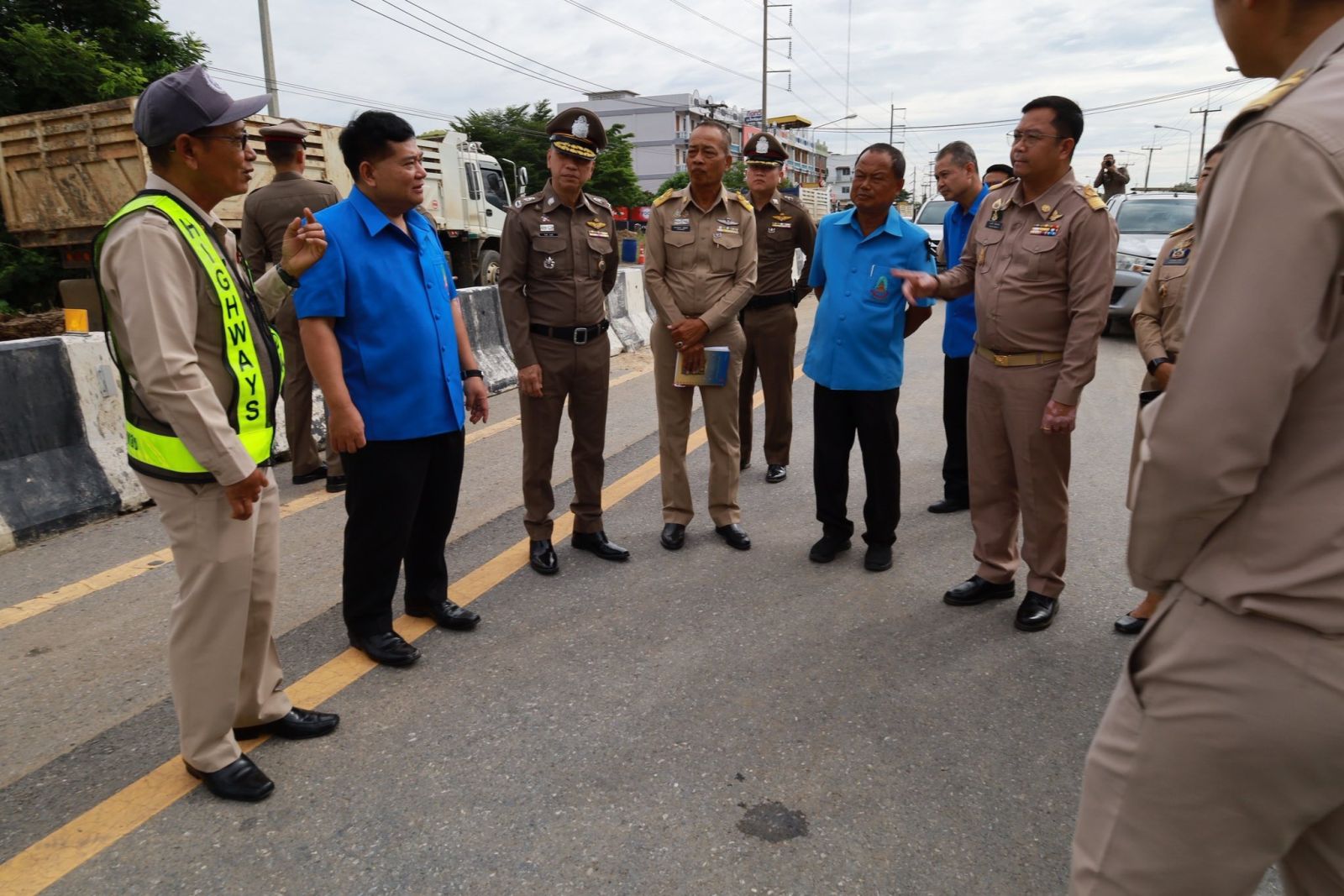 จากนั้น ยังได้ตรวจสอบบริเวณถนนอ่างทอง-ป่าโมก สายใน เพื่อติดตามการซ่อมแซมถนนที่ถูกน้ำท่วมผิวการจราจรและเซาะข้างทาง ได้รับความเสียหาย เบื้องต้น ได้ให้แขวงทางหลวงอ่างทองตรวจสอบตลอดแนวถนนว่ามีโพรงหรือไม่ โดยเฉพาะในจุดเสี่ยงต่าง ๆ ก่อนเริ่มดำเนินการซ่อมแซม เพื่อให้สามารถเปิดถนนใช้ในการสัญจรได้โดยเร็ว ลดผลกระทบต่อประชาชน