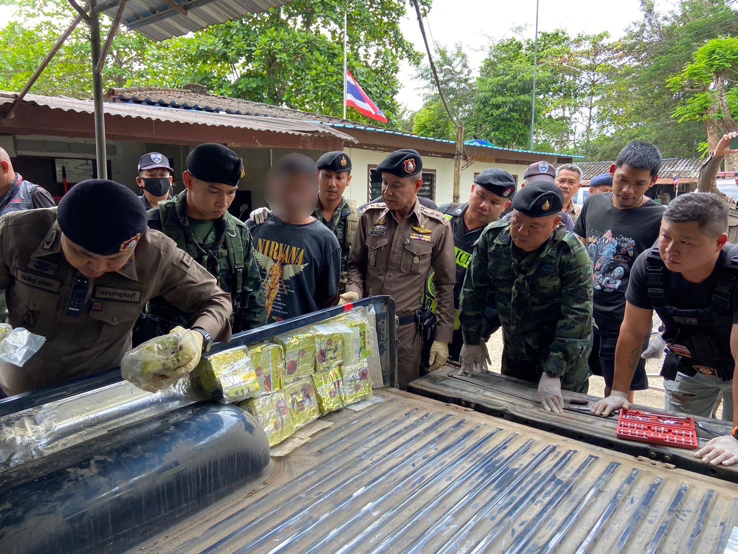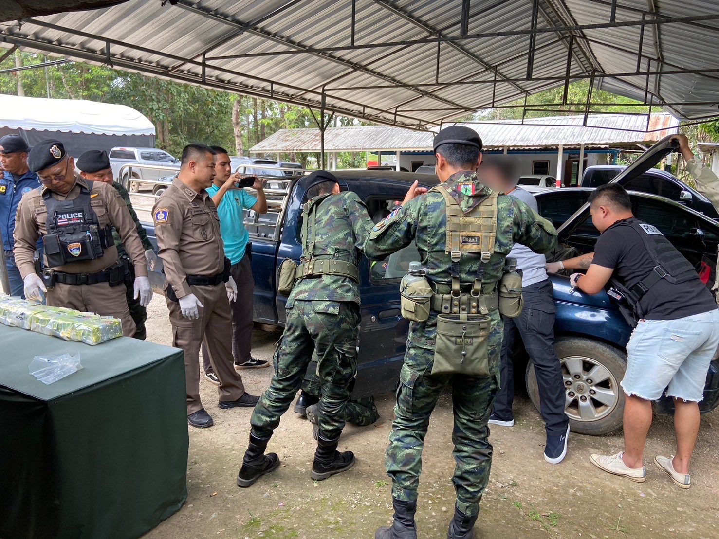 เมื่อวันที่ 17 พฤศจิกายน 2568 ฉก.ลาดหญ้า กกล.สุรสีห์ ร่วมกับฝ่ายความมั่นคงในพื้นที่ ปฏิบัติหน้าที่ ณ จุดตรวจร่วมน้ำเกริ๊ก ม.8 ต.หนองลู อ.สังขละบุรี จ.กาญจนบุรี พบชายต้องสงสัยวัย 36 ปี จากการตรวจสอบผ่านระบบเอกซเรย์แบบสะท้อนกลับ พบการดัดแปลงรถยนต์และซุกซ่อนยาเสพติดไว้ภายในตัวถังรถยนต์กระบะ เพื่อหลบเลี่ยงการตรวจพบจากเจ้าหน้าที่