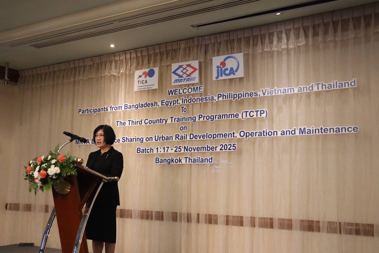 เมื่อวันที่ 17 พฤศจิกายน 2568 การรถไฟฟ้าขนส่งมวลชนแห่งประเทศไทย (รฟม.) ร่วมกับ องค์การความร่วมมือระหว่างประเทศของญี่ปุ่น (Japan International Cooperation Agency: JICA) และ กรมความร่วมมือระหว่างประเทศ (Thailand International Cooperation Agency: TICA) จัดอบรมหลักสูตร “MRTA Experience Sharing on Urban Rail Development, Operation and Maintenance” ภายใต้โครงการ Third Country Training Program (TCTP) ระหว่างวันที่ 17 – 25 พฤศจิกายน 2568 โดยมี นายวิทยา พันธุ์มงคล รองผู้ว่าการ (ปฏิบัติการ) รฟม. เป็นประธานในพิธีเปิดการอบรม พร้อมด้วยผู้แทนจากหน่วยงานความร่วมมือระหว่างประเทศ ได้แก่ Mr. KAWABE Ryoichi, Senior Representative, JICA Thailand Office และ นางอรุณี ไฮม์ม รองอธิบดีกรมความร่วมมือระหว่างประเทศ (TICA) เข้าร่วมเป็นเกียรติในงานดังกล่าว ณ โรงแรมดิเอมเมอรัลด์ รัชดาภิเษก