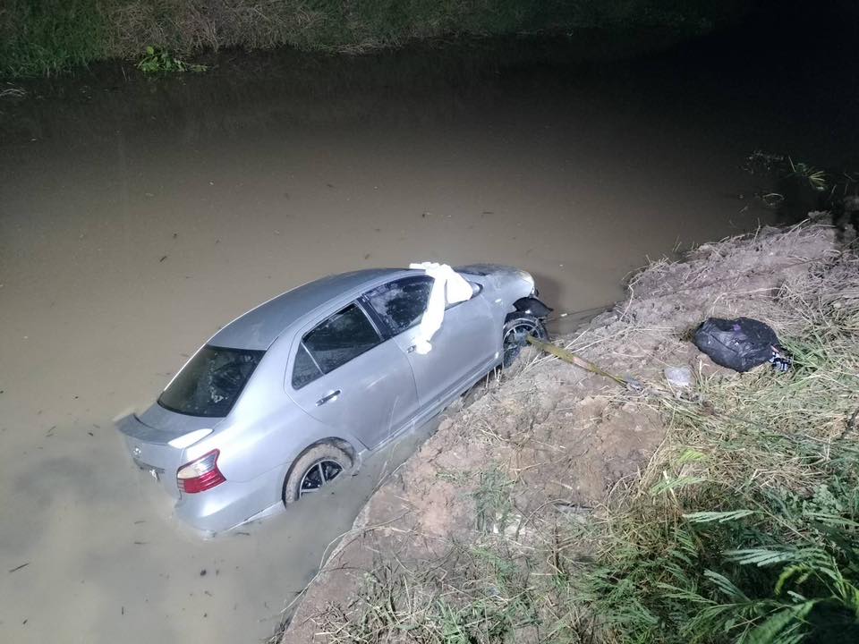 รถนั่งส่วนบุคคลเสียหลักพุ่งตกคลองน้ำ ริมถนนหมายเลข 3551 พบผู้เสียชีวิต 2 รายติดค้างในยานพาหนะ จ.ฉะเชิงเทรา