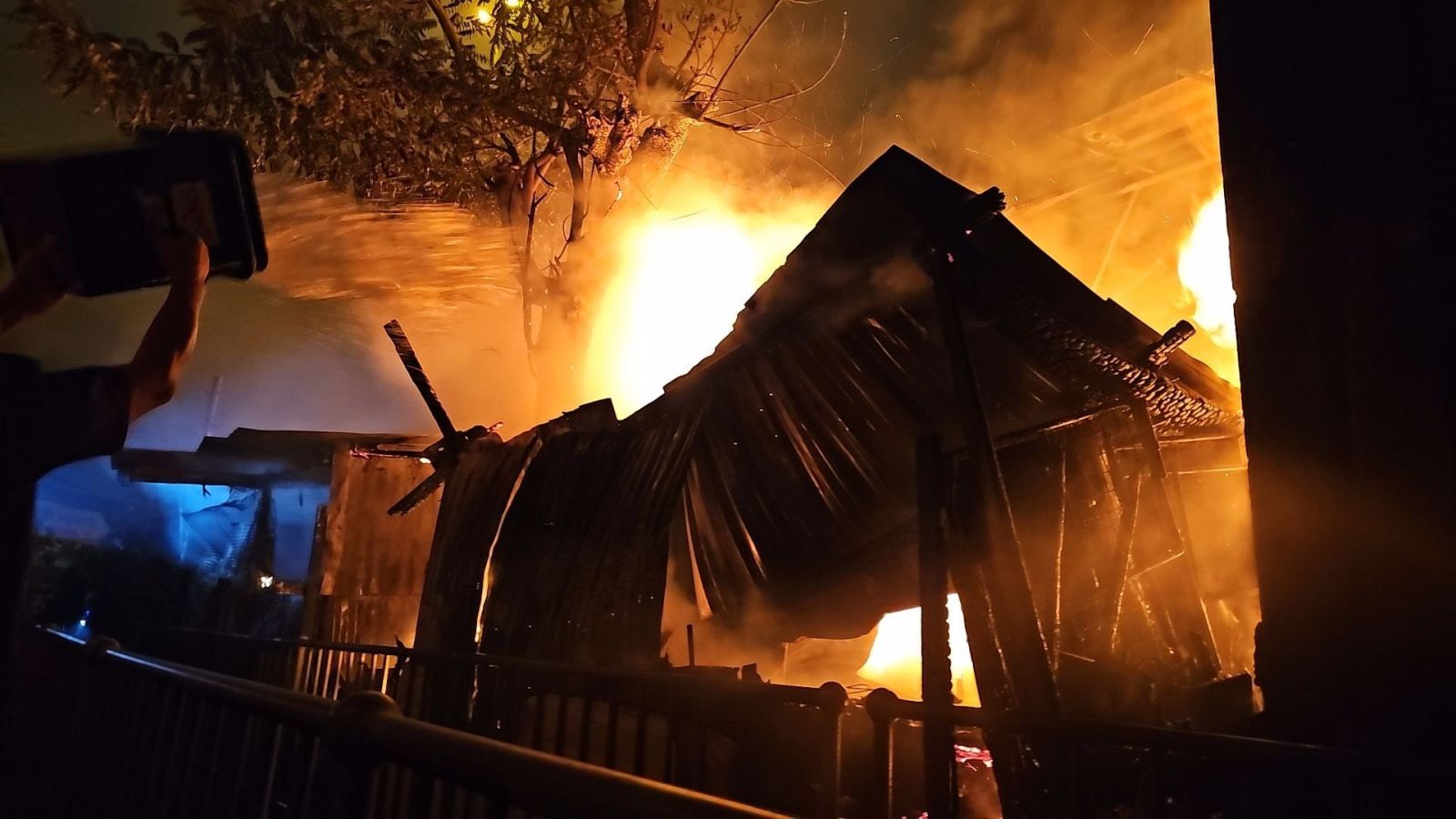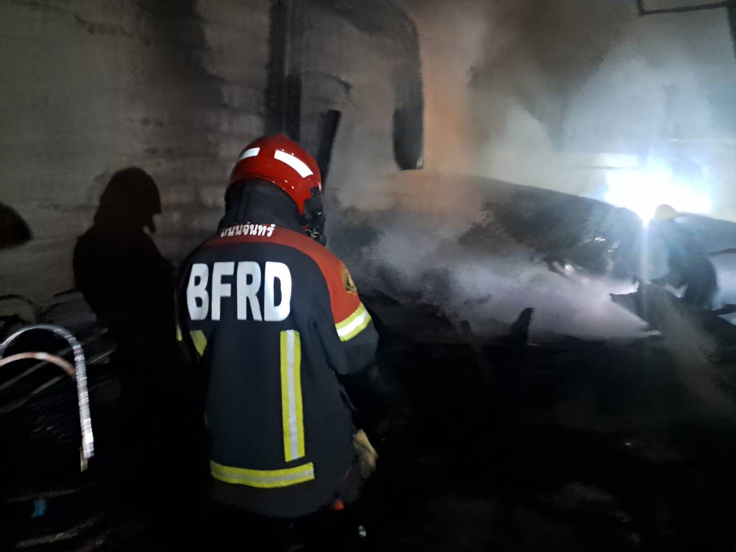 ไฟไหม้เพิงพัก ใกล้เคียงสะพานภูมิพล ถนนพระรามที่ 3 เสียหายหมดทั้งหลัง
