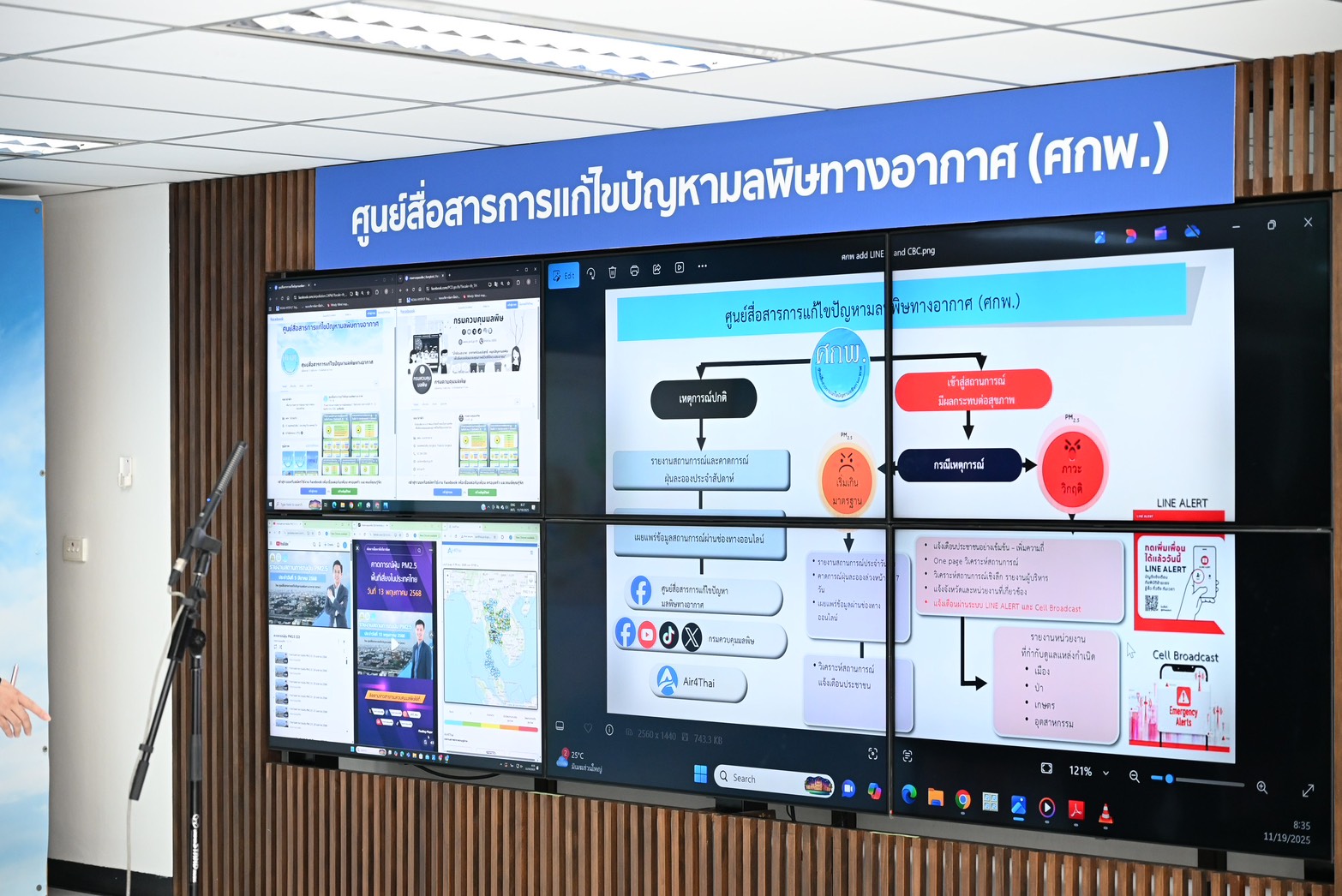 รัฐมนตรีว่าการกระทรวงทรัพยากรธรรมชาติและสิ่งแวดล้อม กล่าวว่า ศูนย์สื่อสารการแก้ไขปัญหามลพิษทางอากาศ (ศกพ.) ซึ่งเป็นศูนย์ปฏิบัติการด้านการสื่อสารสถานการณ์ฝุ่นเพียงศูนย์เดียวของประเทศ โดยมีการบูรณาการความร่วมมือจากหลายภาคส่วนทั้งภาครัฐและภาคเอกชน อาทิ กรมอุตนิยมวิทยา GISTDA กระทรวงมหาดไทย กรุงเทพมหานคร บริษัท ไลน์ คอมพานี