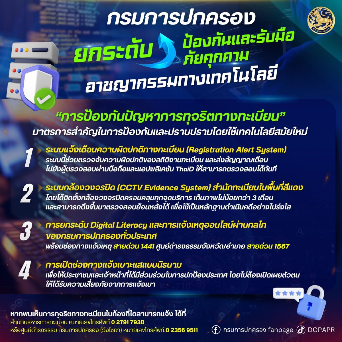 กรมการปกครอง ยกระดับการป้องกันและรับมือภัยคุกคามอาชญากรรมทางเทคโนโลยี