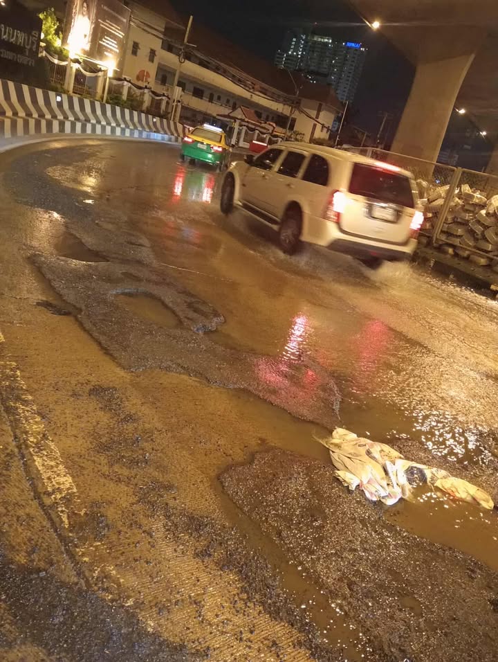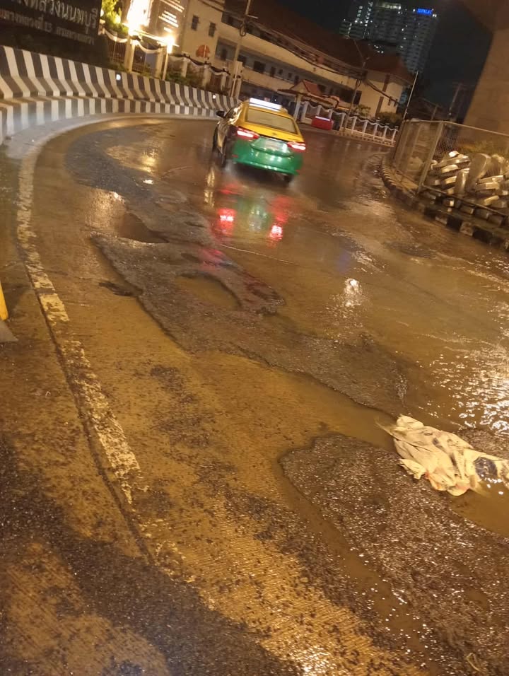 20 พ.ย. 68 เวลา 19.50 น. รายงานจากผู้ใช้เส้นทาง ถ.รัตนาธิเบศร์ ขาออก จุดกลับรถใต้สะพานพระนั่งเกล้า ผิวทางชำรุด มีน้ำไหลเอ่อมาบนเส้นทาง แต่รถยังสามารถผ่านได้ ไม่มีปัญหา โปรดระมัดระวังการใช้เส้นทาง