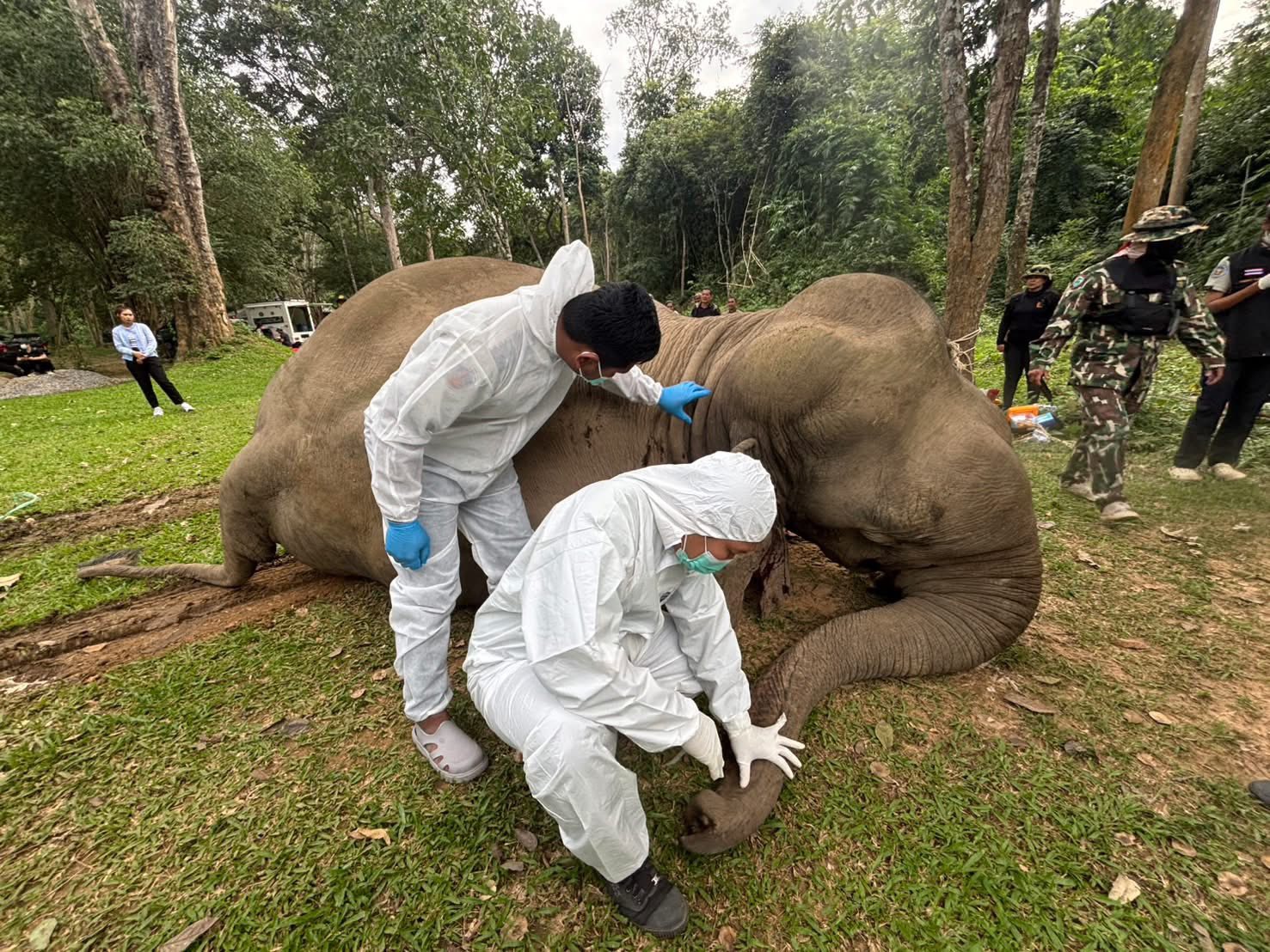 ทีมสัตว์แพทย์จากกรมอุทยานแห่งชาติ สัตว์ป่า และพันธุ์พืช ได้ดำเนินการผ่าชันสูตรซากช้างป่าในที่เกิดเหตุ ผลการชันสูตรยืนยันว่า สาเหตุการตายเกิดจากกระแสไฟฟ้าช็อต โดยเจ้าหน้าที่ได้เก็บตัวอย่างอาหารในกระเพาะช้างเพื่อนำไปวิเคราะห์หาสาเหตุเพิ่มเติมต่อไป