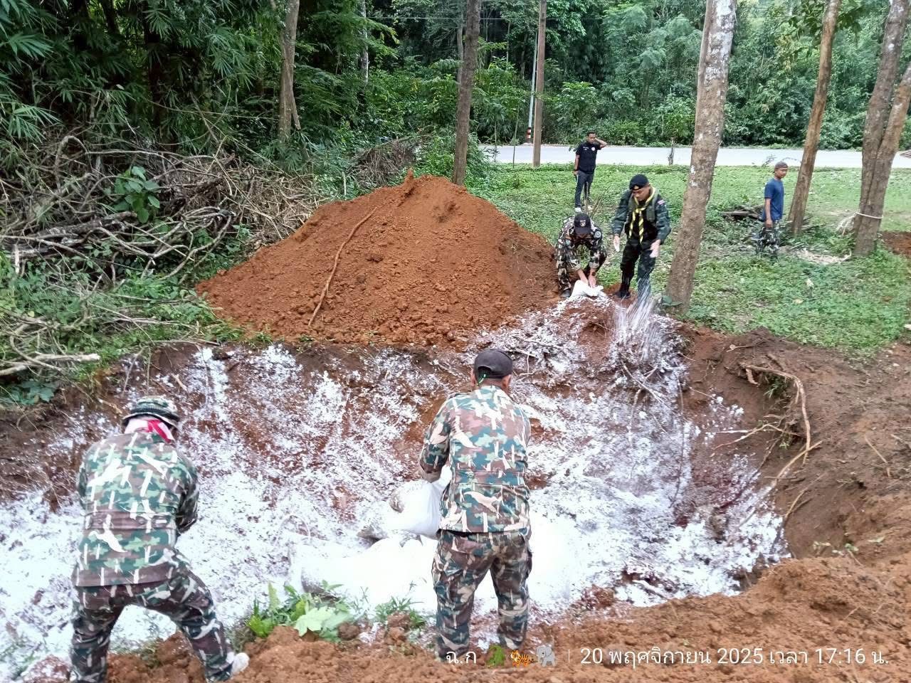 วันที่ 20 พฤศจิกายน 2568 นายนิทัศน์ นุ่นสง ผู้อำนวยการสำนักบริหารพื้นที่อนุรักษ์ที่ 3 สาขาเพชรบุรี พร้อมด้วยคณะเจ้าหน้าที่อุทยานแห่งชาติแก่งกระจาน, สัตว์แพทย์กรมอุทยานฯ, ตำรวจ สภ.แก่งกระจาน, ทหารทัพพญาเสือ, ฝ่ายปกครองอำเภอแก่งกระจาน และเจ้าหน้าที่การไฟฟ้าอำเภอแก่งกระจาน ได้ร่วมกันเข้าตรวจสอบเหตุช้างป่าถูกไฟฟ้าช็อตเสียชีวิต