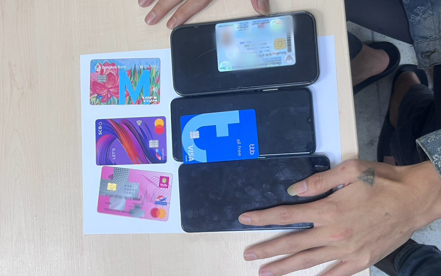 ต่อมา เจ้าหน้าที่ตำรวจนำกำลังลงพื้นที่ประชาอุทิศ เขตห้วยขวาง กทม. กระทั่งสามารถจับกุมตัวนาย บี (นามสมมุติ) อายุ 19 ปี ซึ่งเป็นคนไทยสัญชาติจีน ผู้ทำหน้าที่กดเงินสด และ นายวอ(นามมมุติ) อายุ 18 ปี คนไทยสัญชาติจีนฮ่ออิสระ เจ้าของบัญชีม้าแถว 2 โดยผู้ต้องหาให้การรับสารภาพตลอดข้อกล่าวหา เจ้าหน้าที่นำตังส่งดำเนินคดีตมกฎหมาย