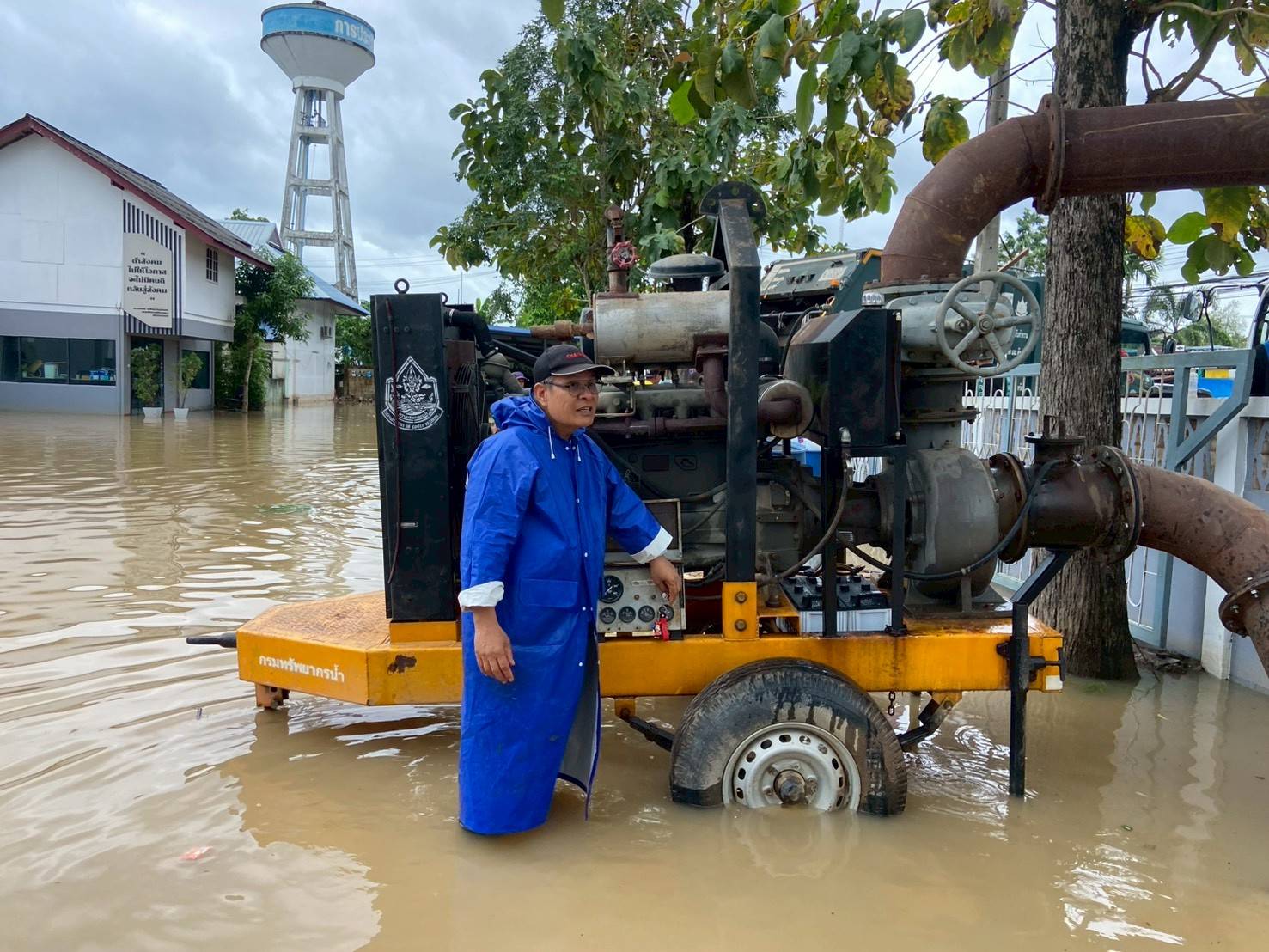 นายธีระชุณ บุญสิทธิ์ อธิบดีกรมทรัพยากรน้ำ เปิดเผยว่า มวลน้ำจำนวนมากจากฝนที่ตกต่อเนื่องได้ไหลเข้าท่วมหลายชุมชน ส่งผลให้ต้องเร่งประสานกำลังร่วมกับ ปภ. กรมชลประทาน กองทัพ ตำรวจ และจิตอาสา เพื่อบรรเทาความเดือดร้อนของประชาชน โดยสั่งการให้สำนักงานทรัพยากรน้ำที่ 8 (สทน.8) และสำนักงานทรัพยากรน้ำที่ 10 (สทน.10) ลงพื้นที่ตั้งเครื่องสูบน้ำ รถน้ำ และระดมทีมเจ้าหน้าที่เข้าพื้นที่เสี่ยงทันที