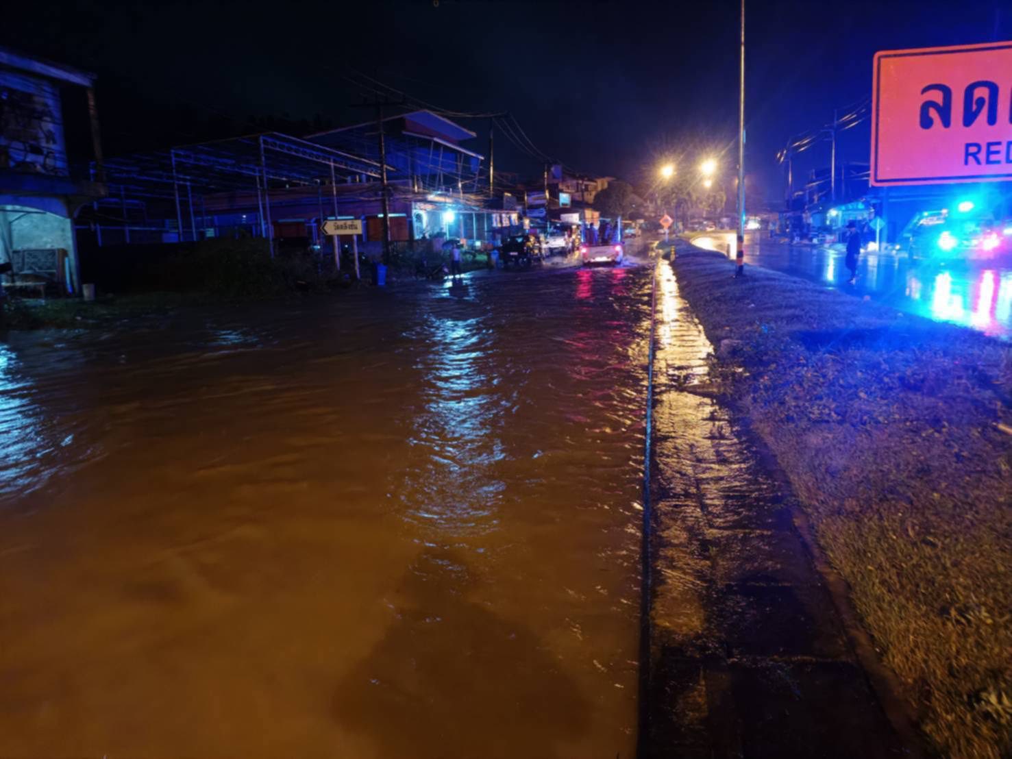 จะทำการปิดเส้นทางการจราจร 1 ช่องทาง เนื่องจากน้ำท่วมถนน รถเล็กไม่สามารถไปได้ใช้ถนนฝั่งขาขึ้นไปยะลา