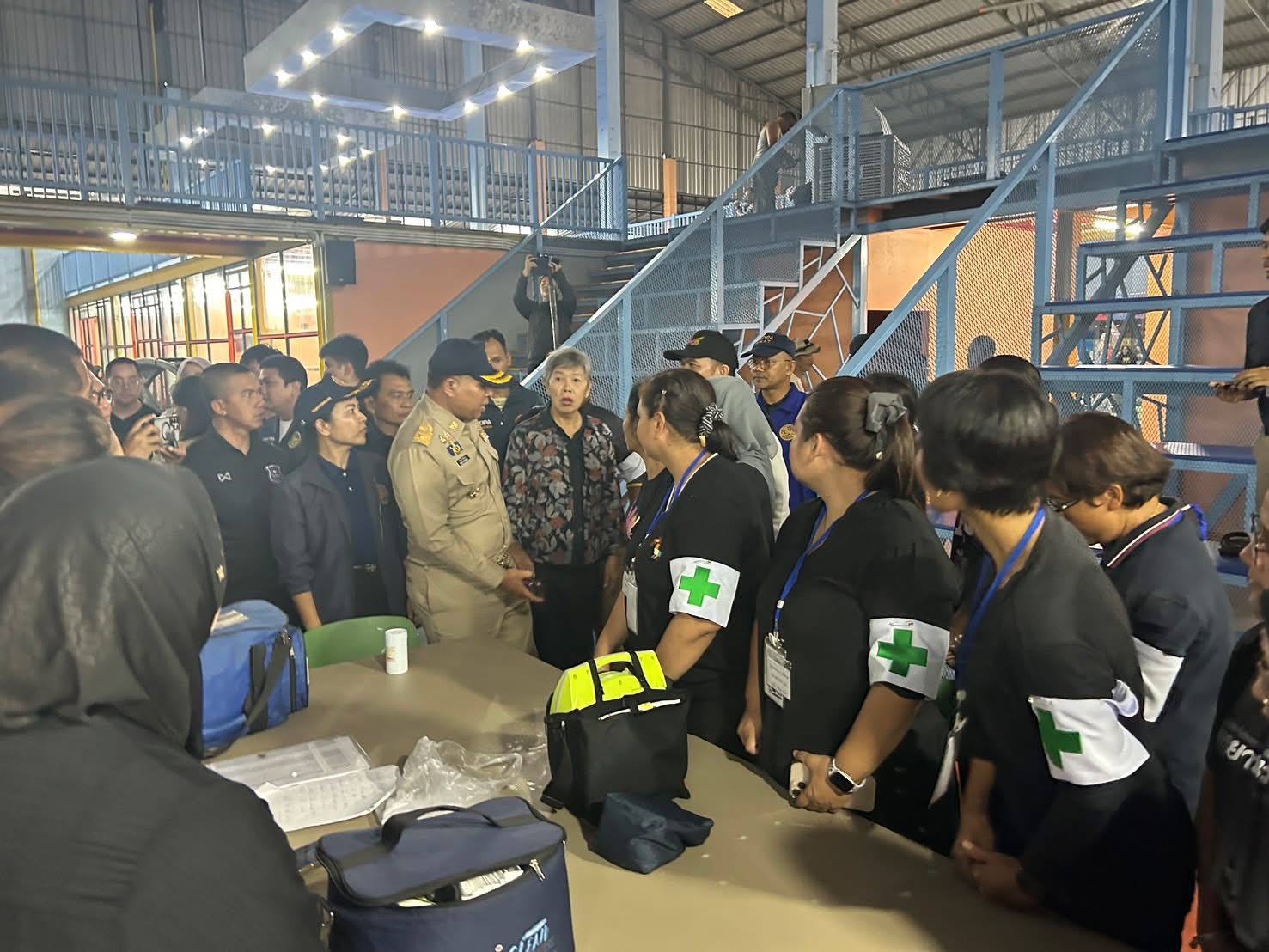 ช่วงเย็น วันที่ 24 พฤศจิกายน 2568 ที่จุดพักรถ ปาดิ-โอ ร้านของฝาก หมู่ที่ 12 ถ.เอเชีย ตำบลท่าแค อำเภอเมืองพัทลุง นายธราวุธ ช่วยเกิด รองผู้ว่าราชการจังหวัดพัทลุง พร้อมด้วยนายอำเภอเมืองพัทลุง นายกองค์การบริหารส่วนจังหวัดพัทลุง นายกเทศบาลตำบลท่าแค และหน่วยงานที่เกี่ยวข้อง ได้จัดหาที่พักชั่วคราว พร้อมเยี่ยมให้กำลังใจ กับ ชาวจังหวัดนราธิวาส 850 คน ที่เดินทางออกจากจังหวัดนราธิวาส เมื่อวันที่ 21 พฤศจิกายน 2568 ที่ผ่านมา ด้วยรถบัสจำนวน 18 คัน และได้เดินทางกลับจากกรุงเทพมหานคร หลังเข้ากราบถวายบังคมพระบรมศพ สมเด็จพระพันปีหลวง ถึงจังหวัดพัทลุงในวันนี้ แต่ไม่สามารถเดินทางต่อไปได้ เนื่องจากเส้นทางไปยังจังหวัดนราธิวาส นั้นผ่านอำเภอหาดใหญ่ จังหวัดสงขลา ที่น้ำกำลังท่วมหนักเส้นทางรถยนต์ไม่สามารถวิ่งผ่านได้