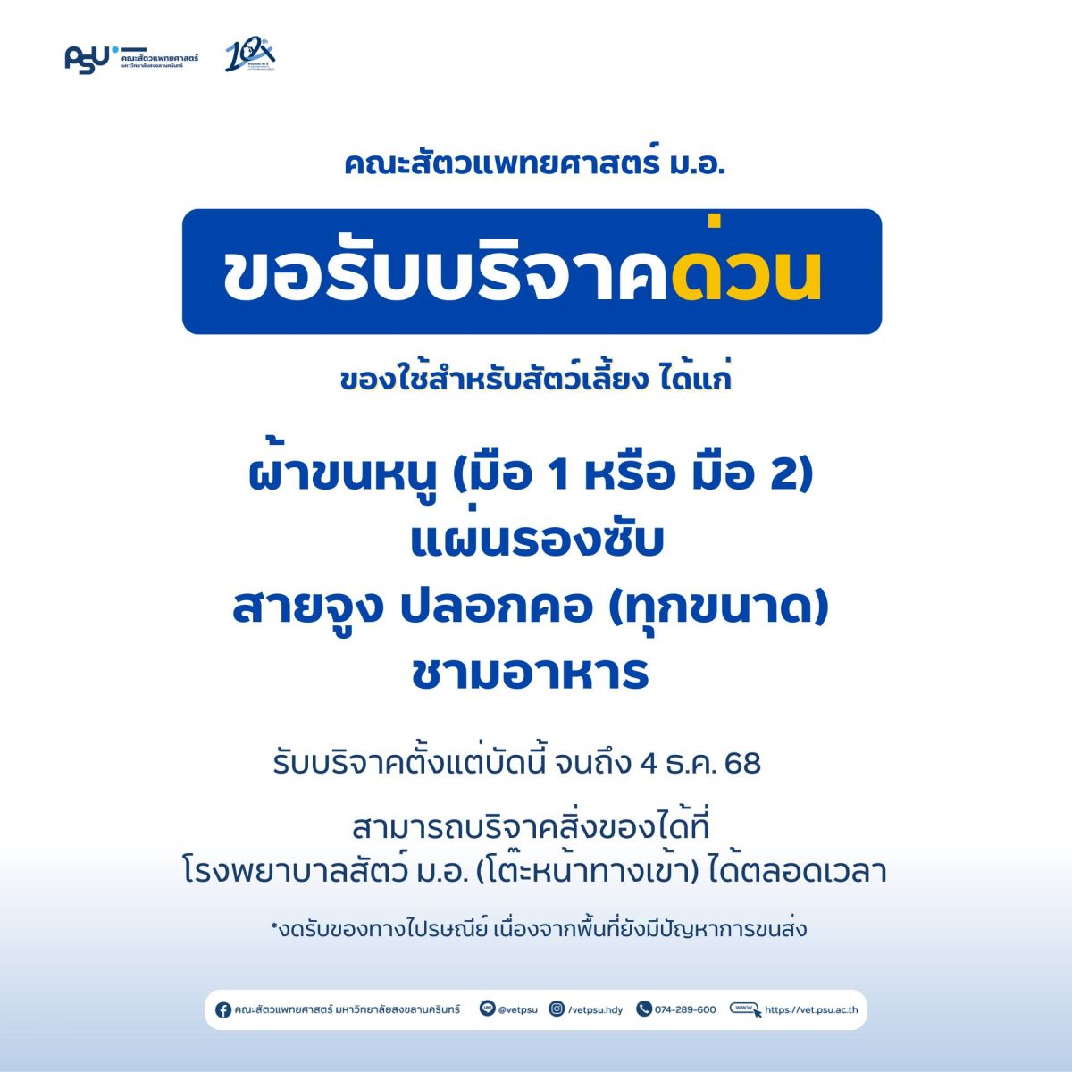 คณะสัตวแพทยศาสตร์ ม.อ. ขอขอบคุณทุกน้ำใจของทุกท่าน