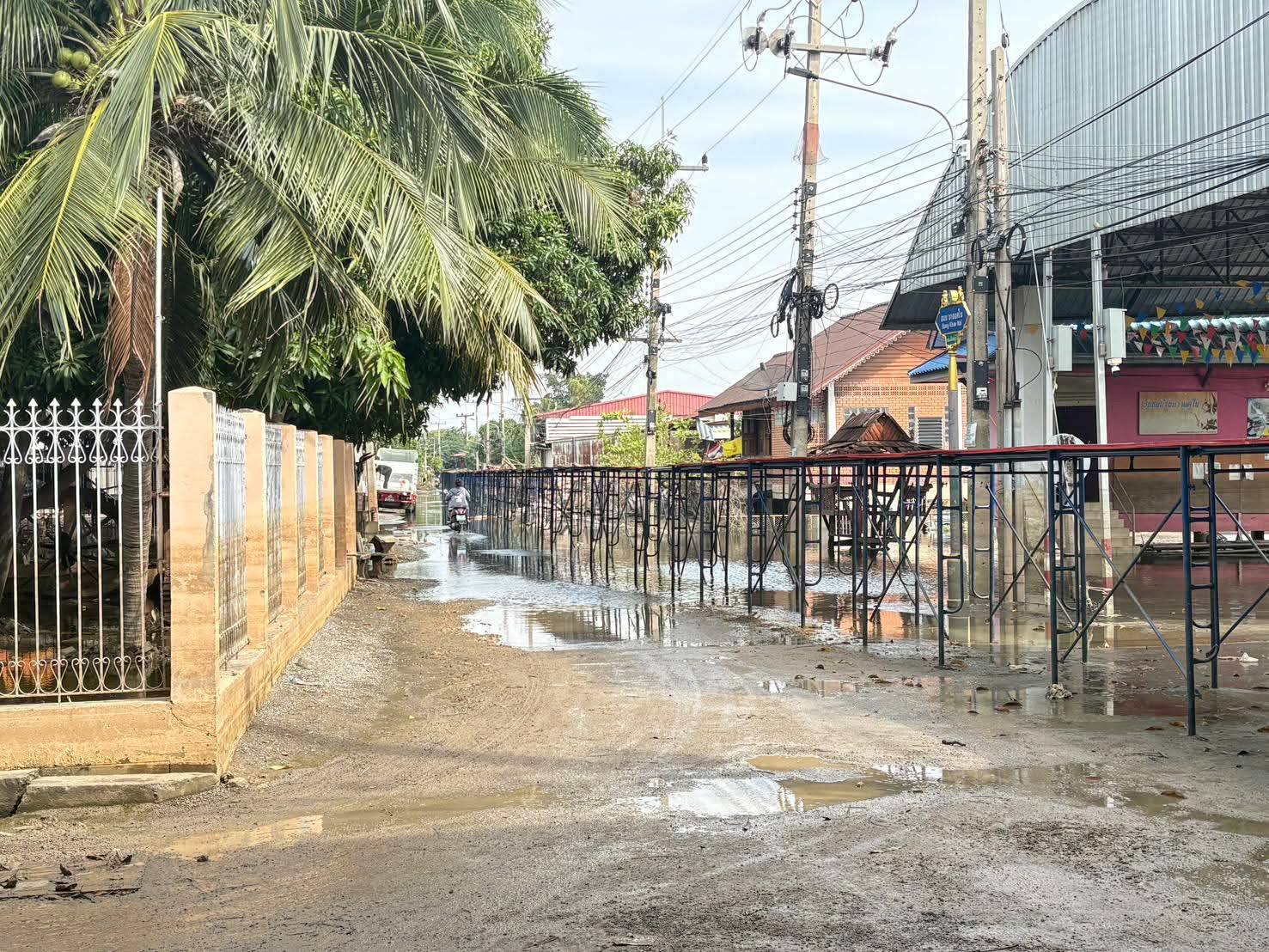 'น้ำลดลงแล้ว' ชุมชนบ้านบางแคใน - บางแคนอก - บ้านบางกระบือ เทศบาลเมืองสิงห์บุรี เข้าดำเนินการ เปิดแนวกระสอบทราย ทยอยถอนนั่งร้านทางเดิน
