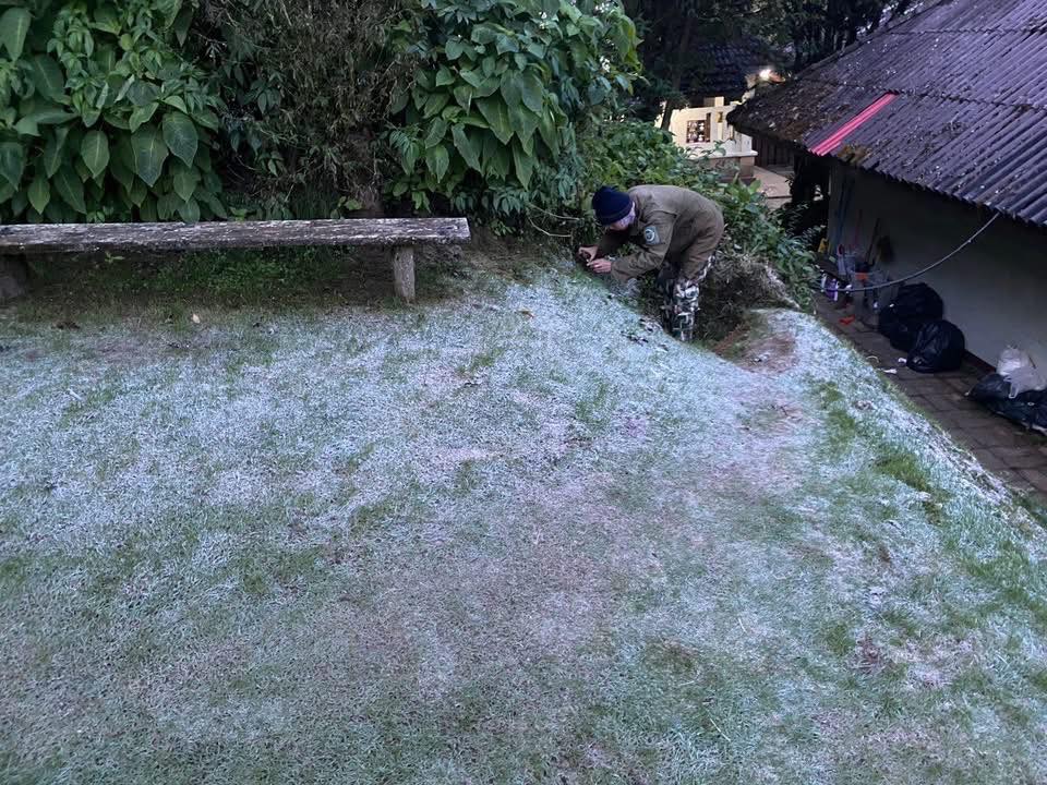 เช้าวันที่ 28 พ.ย. 2568 เวลา 07.00 น. เจ้าหน้าที่บนดอยอินทนนท์รายงานอากาศ หนาวยะเยือกแบบจับกระดูก อุณหภูมิทั่วไปบนยอดดอยเหลือเพียง 3°C แต่ความโหดยังไม่หมด… เพราะ อุณหภูมิยอดหญ้าดิ่งติดลบ –4.9°C ทำสถิติต่ำสุดของฤดูหนาวปีนี้!