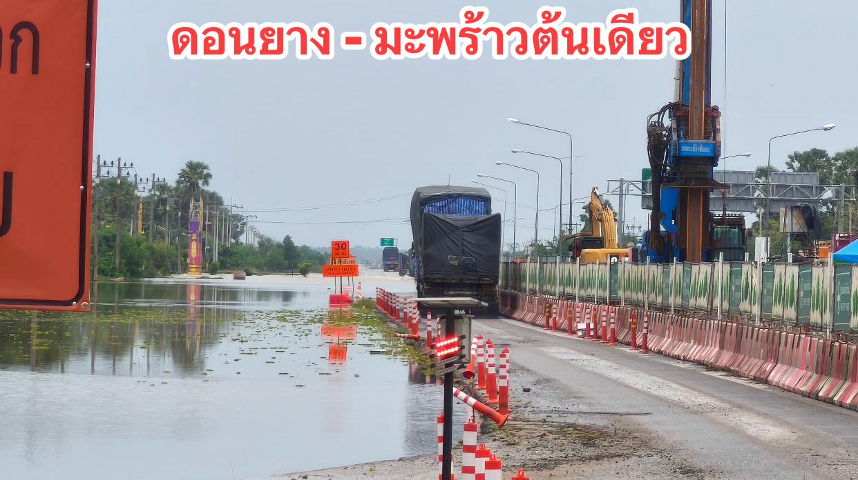- ถนนสาย 43 ไปมะพร้าวต้นเดียว ยังมีน้ำท่วมสูง รถเล็กไม่สามารถผ่านได้ รถกระบะยกสูงและรถบรรทุก สามารถสัญจรผ่านได้โดยใช้ความระมัดระวัง