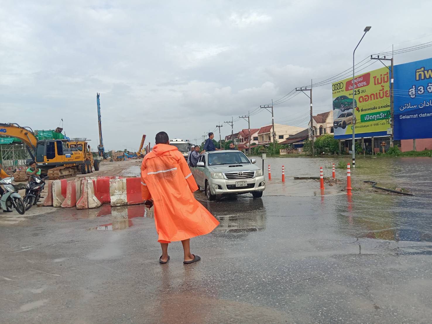 - ตรวจสอบสภาพน้ำถนนสาย42 ฝั่งขาเข้าเมืองปัตตานีเส้นทางยังคงมีระดับน้ำท่วมอยู่ มีกระแสน้ำแรงบางช่วง รถทุกชนิดสามารถสัญจรผ่านได้โดยใช้ความระมัดระวัง