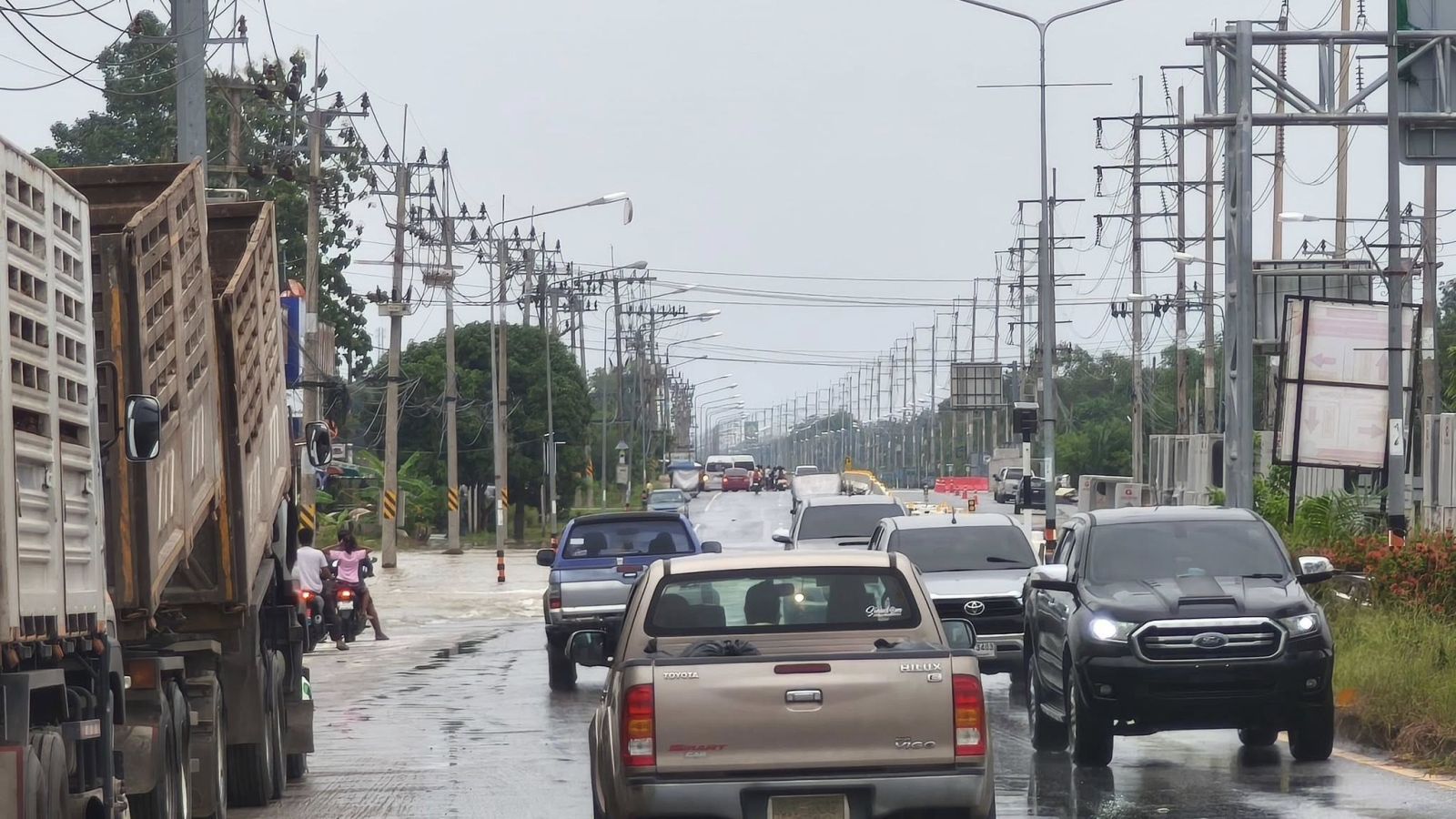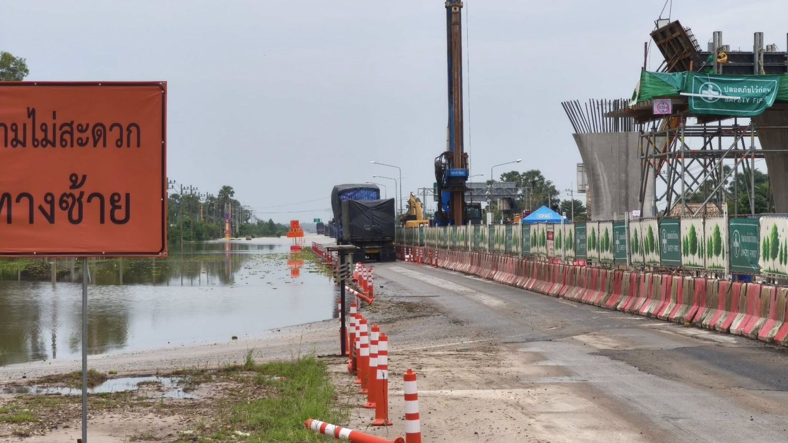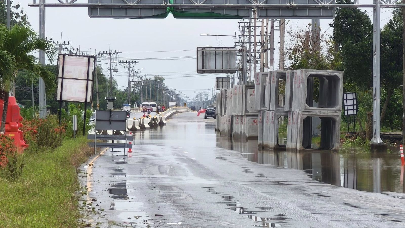 - ตรวจสอบสภาพน้ำถนนสาย42 ฝั่งขาเข้าตลาดบ่อทองเส้นทางยังคงมีระดับน้ำท่วมอยู่ รถเล็กยังไม่สามารถสัญจรผ่านได้ เว้นรถกระบะและรถบรรทุกสามารถสัญจรได้โดยใช้ความระมัดระวัง