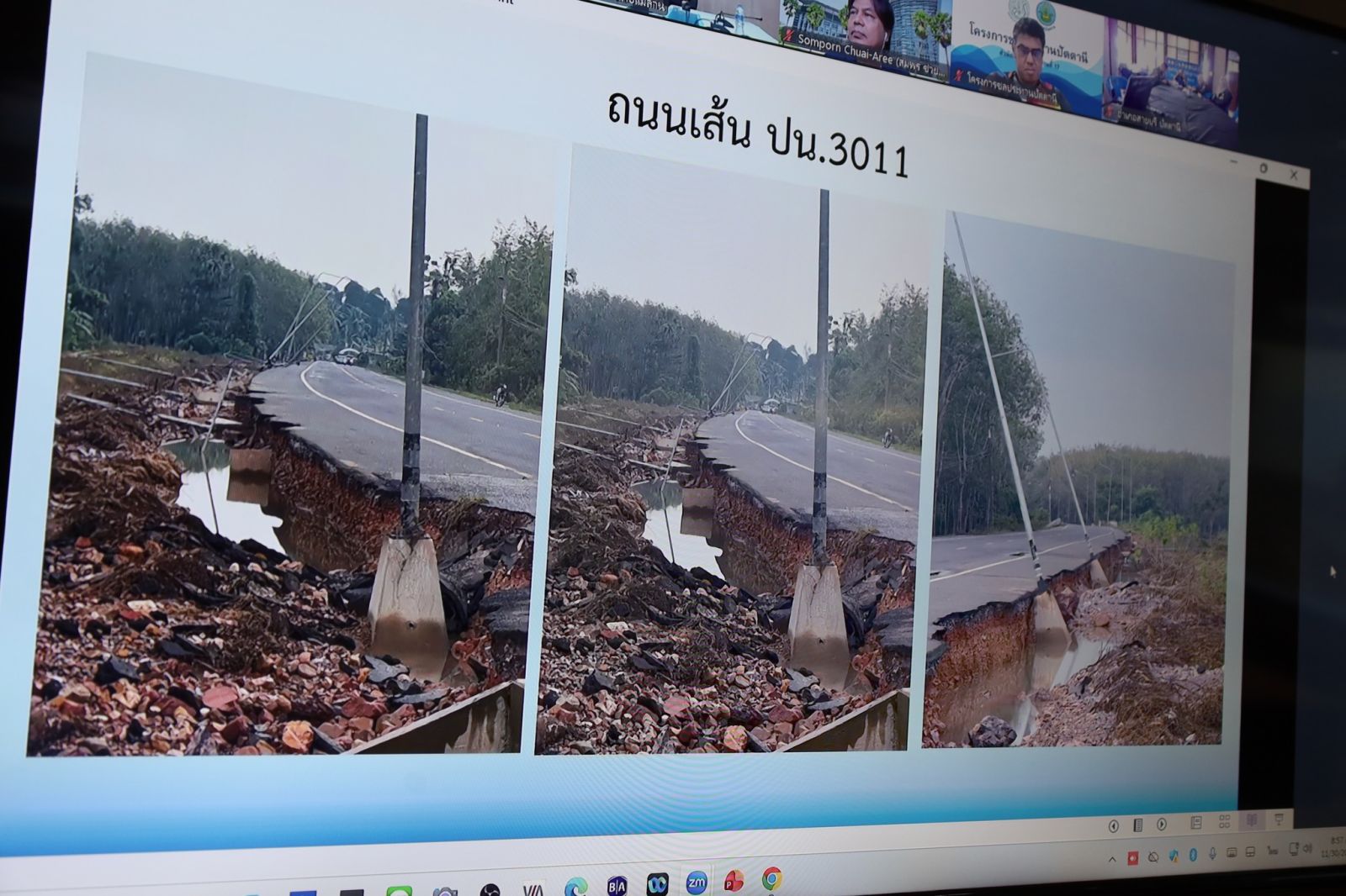 วันที่ 30 พ.ย.68 ที่ ห้องศูนย์ปฏิบัติการฉุกเฉิน EOC สำนักงานป้องกันและบรรเทาสาธารณภัยจังหวัดปัตตานี อาคาร 3 ขั้น 1 ศาลากลางจังหวัดปัตตานี นางพาตีเมาะ สะดียามู ผู้ว่าราชการจังหวัดปัตตานี เป็นประธานการประชุมศูนย์บัญชาการเหตุการณ์จังหวัดปัตตานีเพื่อป้องกันและแก้ไขปัญหาอุทกภัย วาตภัย และดินถล่ม ปี 2568 เพื่อติดตามสถานการณ์อุทกภัย และให้ความช่วยเหลือประชาชนที่ได้รับผลกระทบอย่างเร่งด่วน มี รองผู้ว่าราชการจังหวัดปัตตานี หัวหน้าสำนักงานป้องกันและบรรเทาสาธารณภัยจังหวัดปัตตานี ประชาสัมพันธ์จังหวัดปัตตานี หัวหน้าส่วนราชการ นายอำเภอ 12 อำเภอและหน่วยงานที่เกี่ยวข้อง ร่วมประชุมผ่าน Video Conference (วิดีโอคอนเฟอเรนซ์)