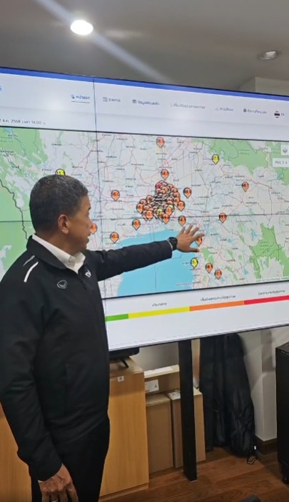 (2 ธ.ค. 68) ณ ศูนย์ข้อมูลคุณภาพอากาศ กรุงเทพมหานคร ศาลาว่าการกรุงเทพมหานคร ดินแดง : นายชัชชาติ สิทธิพันธุ์ ผู้ว่าราชการกรุงเทพมหานคร เปิดเผยถึงสถานการณ์ฝุ่นละออง PM2.5 ในกรุงเทพฯ ที่วันนี้มีค่าความเข้มข้นในระดับสีส้ม ว่า ขณะนี้กรุงเทพมหานครเปลี่ยนจากฤดูฝนเริ่มเข้าสู่ฤดูฝุ่น คือประมาณเดือนพฤศจิกายนถึงกุมภาพันธ์ โดยจะเห็นได้ว่า ไม่ใช่แค่ในพื้นที่กรุงเทพมหานครเท่านั้น ที่มีค่าฝุ่นเป็นสีส้มทั้ง 50 เขต แต่ทั้งภาคกลางได้รับผลกระทบเรื่องฝุ่น ไม่ว่าจะเป็นนครปฐม สมุทรปราการ สมุทรสงคราม ฉะเชิงเทรา ปทุมธานี ล้วนมีค่าฝุ่นในระดับสีส้ม