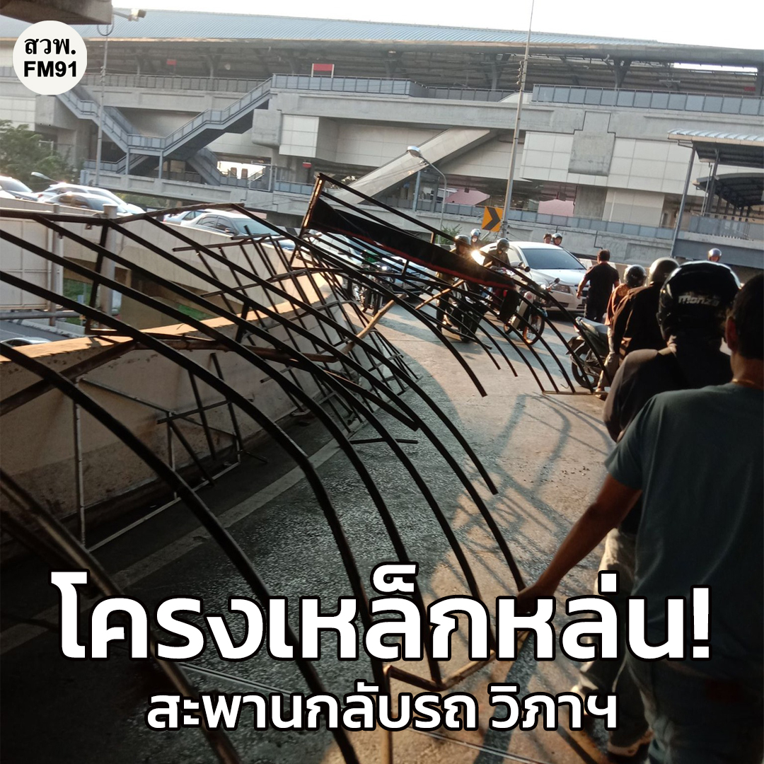 รถบรรทุกทำโครงเหล็กขนาดใหญ่ตกหล่นบนพื้นผิวจราจร จนท.อยู่ระหว่างเคลื่อนย้าย ท้ายสะสมเลยปากทางลาดพร้าว-วิภาวดีรังสิต 3