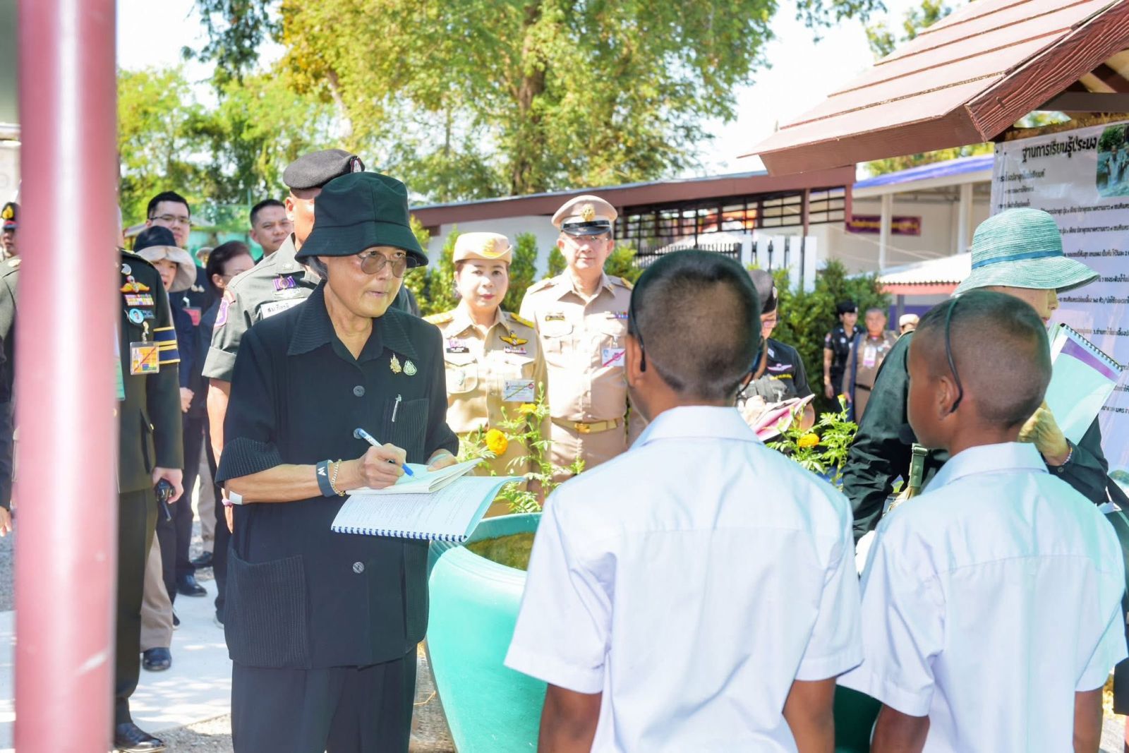 โอกาสนี้ ทรงพระราชทานเครื่องอุปโภคบริโภค เครื่องเขียน ชุดนักเรียน แก่ครูใหญ่และผู้แทนนักเรียน จากนั้น พระราชทานพันธุ์มะม่วงน้ำดอกไม้สีทอง และขนุนพันธุ์ทองประเสริฐ แก่ผู้แทนชุมชน
