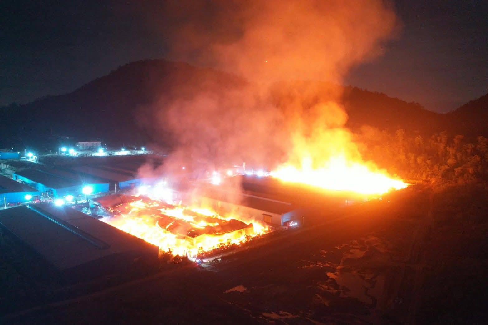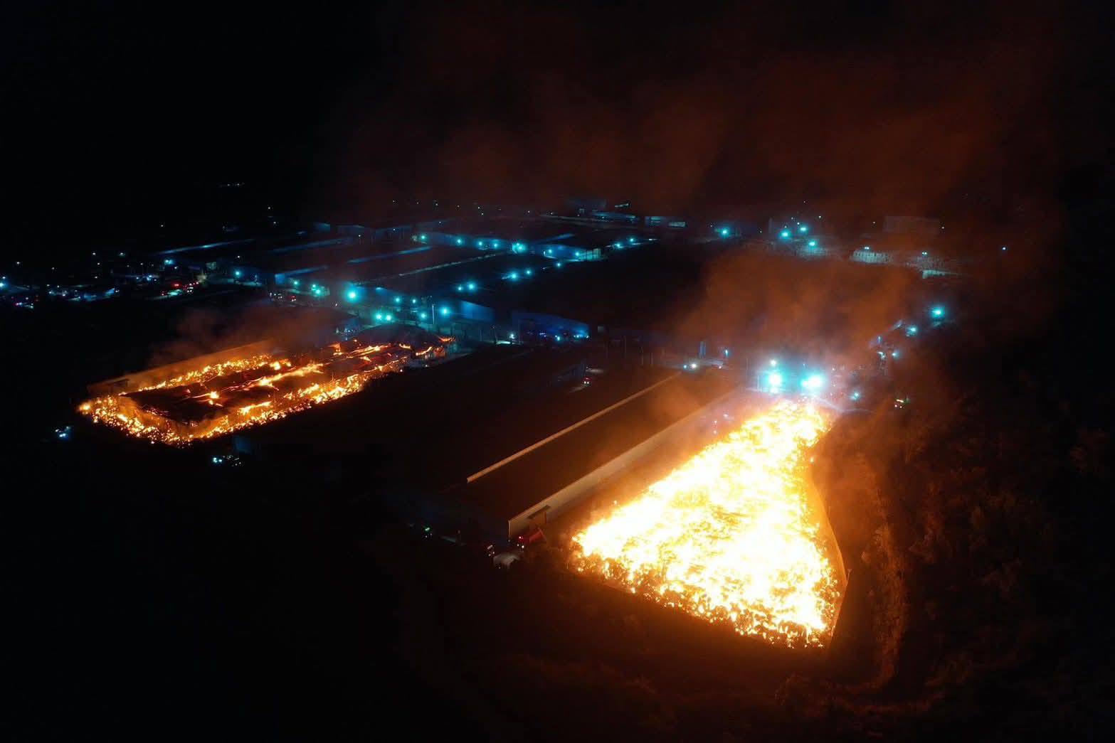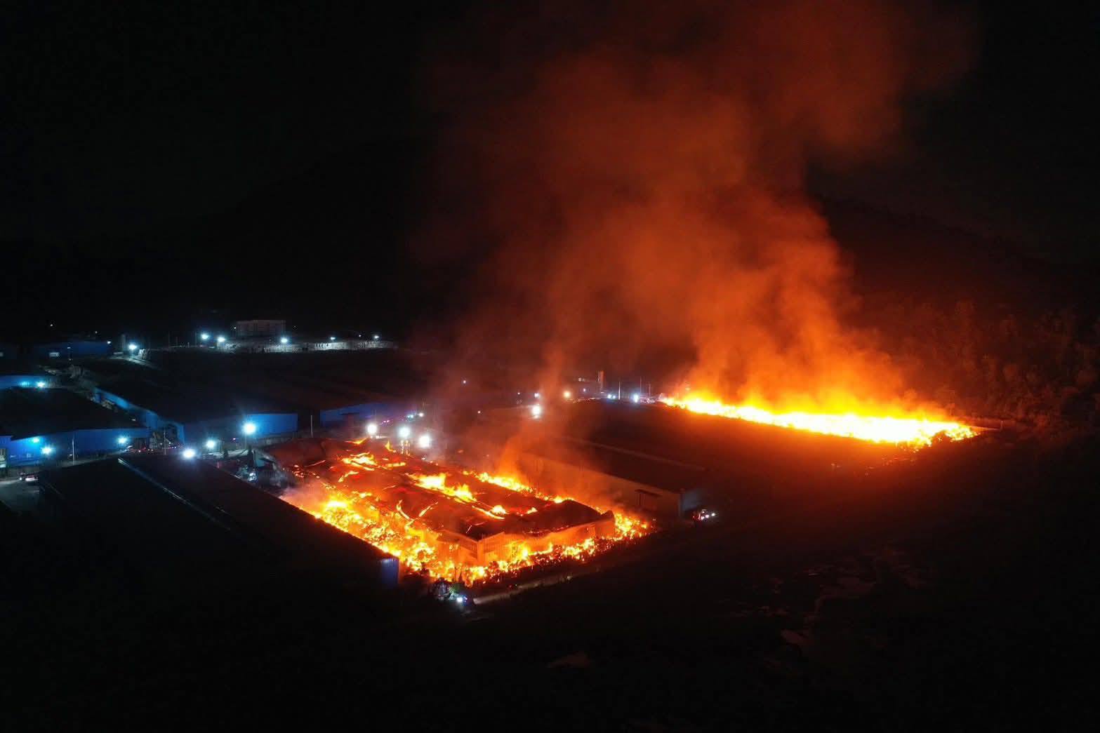 ไฟไหม้โรงงานกระดาษ ย่านอำเภอหนองใหญ่ แสงเพลิงยังเต็มพื้นที่ จนท.กำลังระดมฉีดน้ำสกัด จ.ชลบุรี