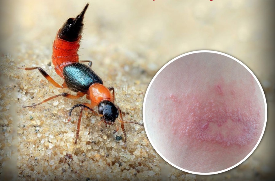 นายแพทย์อัครฐาน จิตนุยานนท์ รองอธิบดีกรมการแพทย์ กล่าวว่า “ด้วงก้นกระดก หรือ ด้วงปีกสั้น เป็นแมลงลำตัวยาว สีส้มสลับดำ ตัวแมลงไม่ได้กัดหรือดูดเลือด แต่จะปล่อยสารพิษชื่อ “เพเดอริน (Pederin)” ออกมาเมื่อถูกรบกวน เช่น ถูกปัด ถูกบีบ หรือถูกขยี้ ทำให้ผิวหนังบริเวณที่สัมผัสเกิดการอักเสบ ผู้ป่วยมักมีผื่นแดง แสบร้อน คัน หรือเกิดตุ่มน้ำ โดยอาการมักเริ่มขึ้นภายใน 24 ชั่วโมง พบบ่อยบริเวณใบหน้า คอ แขน ขา และลำตัว
