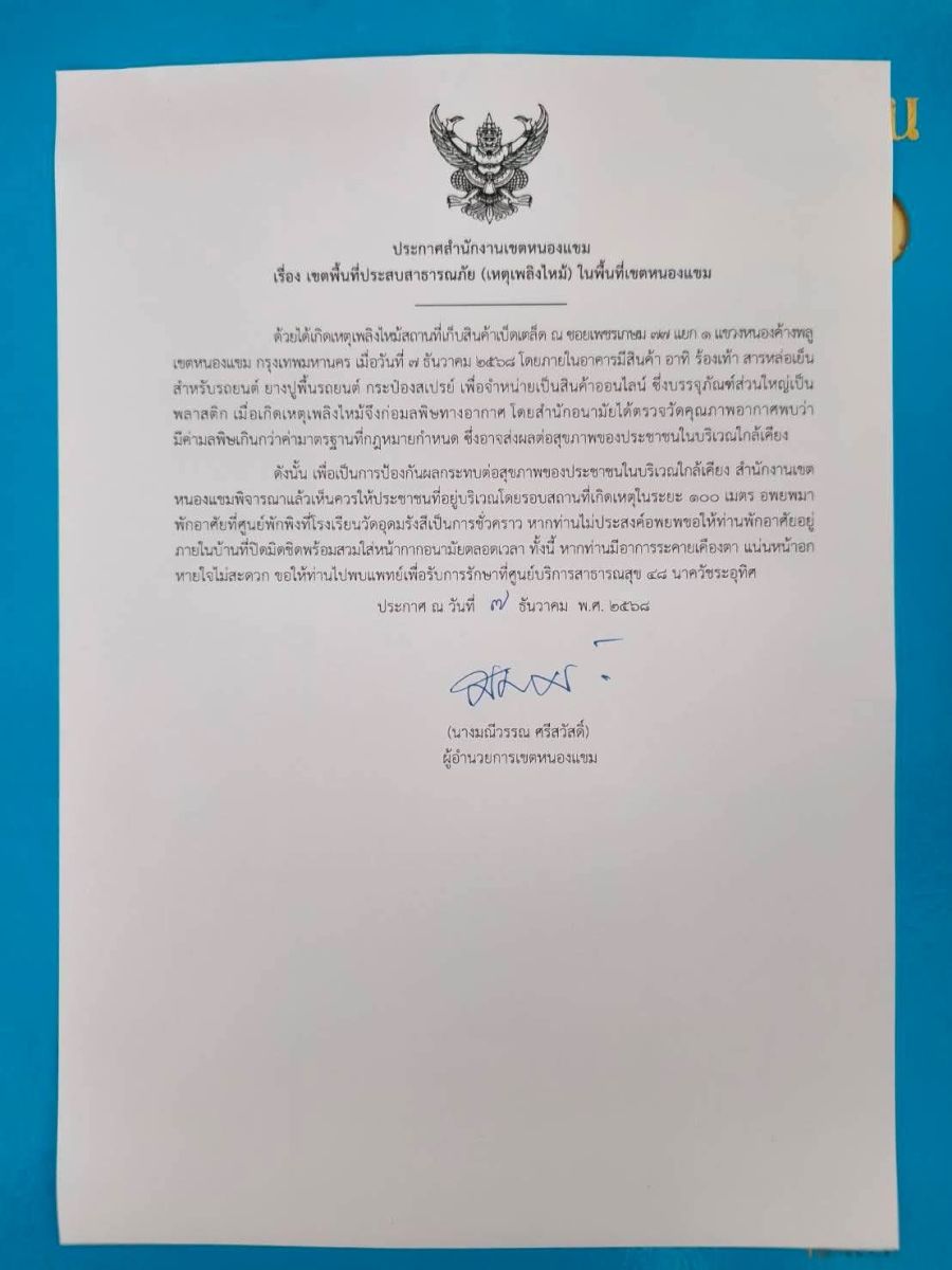 ด้วยได้เกิดเหตุเพลิงไหมัสถานที่เก็บสินค้าเบ็ดเตล็ด ณ ชอยเพชรเกษม 77 แยก 1 แขวงหนองค้างพลู เขตหนองแขม กรุงเทพมหานคร เมื่อวันที่ 7 ธันวาคม 2568