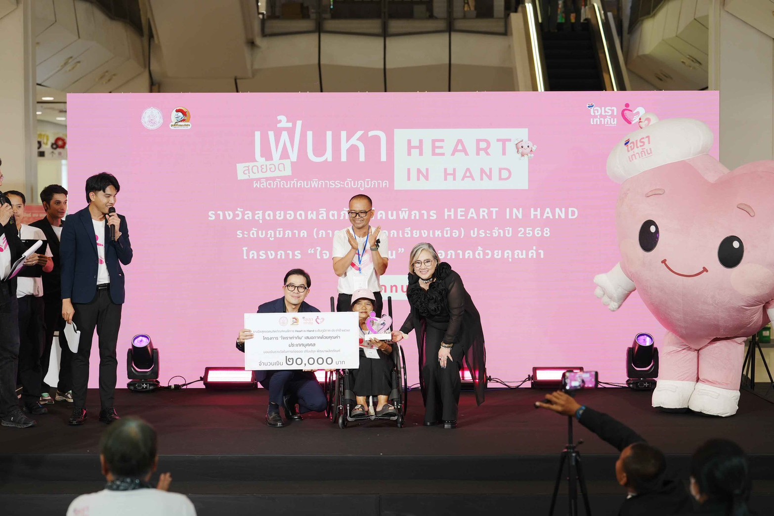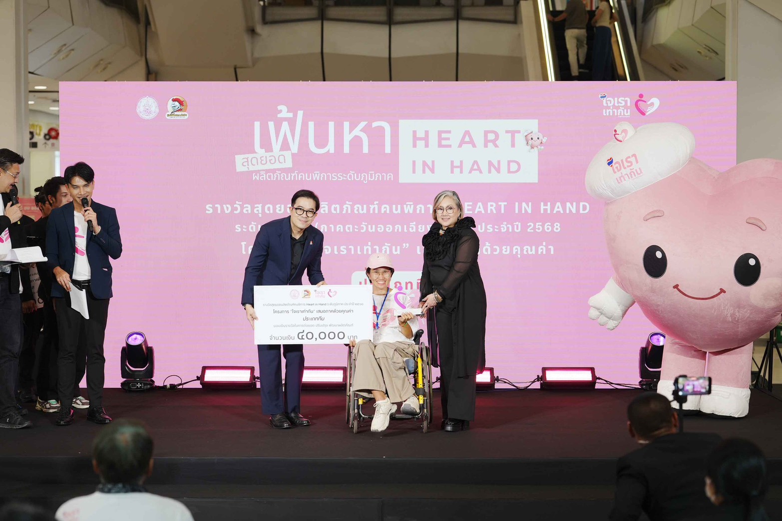โครงการ “ใจเราเท่ากัน” เสมอภาคด้วยคุณค่า เฟ้นหาสุดยอดผลิตภัณฑ์คนพิการ Heart in Hand ระดับภูมิภาค (ภาคตะวันออกเฉียงเหนือ) จัดขึ้นระหว่างวันที่ 7-8 ธันวาคม 2568 โดยจัดกิจกรรม Workshop เสริมทักษะให้ผู้เข้าแข่งขันก่อนเริ่มประกวด ช่วยปลดล็อกให้ผู้เข้ารอบนำเสนอผลงาน จัดแสดงสินค้า และพบปะผู้ประกอบการ เพื่อสร้างโอกาสทางธุรกิจได้จริง ซึ่งจะมีการจัดประกวด ณ ศูนย์การค้าเซ็นทรัล ขอนแก่น จ.ขอนแก่น