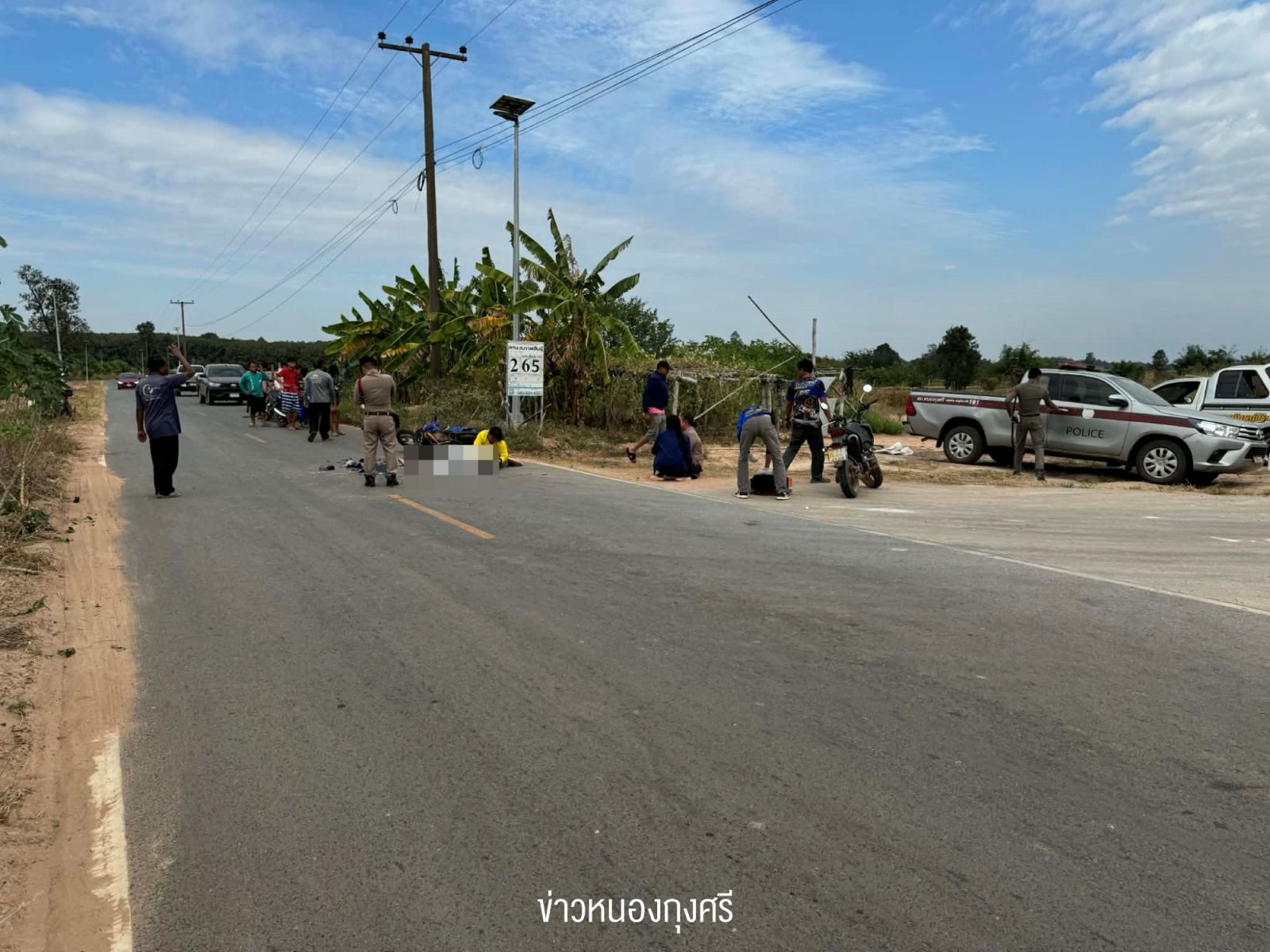 เมื่อเวลา 13.20 น. วันที่ 10 ธันวาคม 2568 พ.ต.ท.อุทัย พันธ์ทอง สว.(สอบสวน) สภ.หนองกุงศรี จ.กาฬสินธุ์ ได้รับแจ้งเหตุอุบัติเหตุรถจักรยานยนต์ชนกับรถบรรทุก มีทั้งผู้บาดเจ็บและผู้เสียชีวิต บนถนนสายบ้านดงมูล - บ้านศรีสว่าง บริเวณหน้าลานรับซื้อหัวมันสำปะหลัง  ในพื้นที่ ต.หนองบัว อ.หนองกุงศรี จ.กาฬสินธุ์
