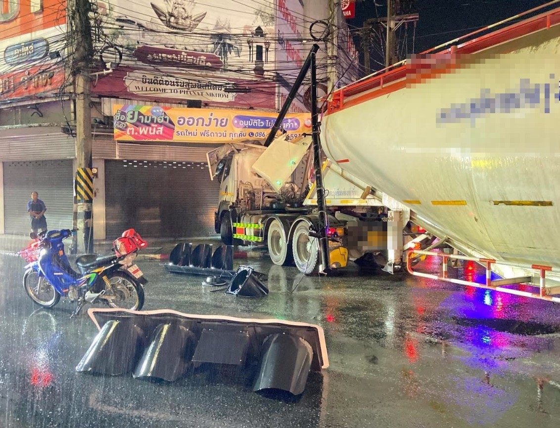 05.30 น. วันที่ 11 ธันวาคม 2568 เกิดเหตุ รถบรรทุกปูนผง ชนเสาไฟฟ้าและเสาสัญญาณไฟจราจร แยกศุขประยูร บริเวณหน้าร้าน ต.พนัสยานยนต์ ขอให้ผู้ใช้เส้นทาง หลีกเลี่ยงสี่แยกศุขประยูร