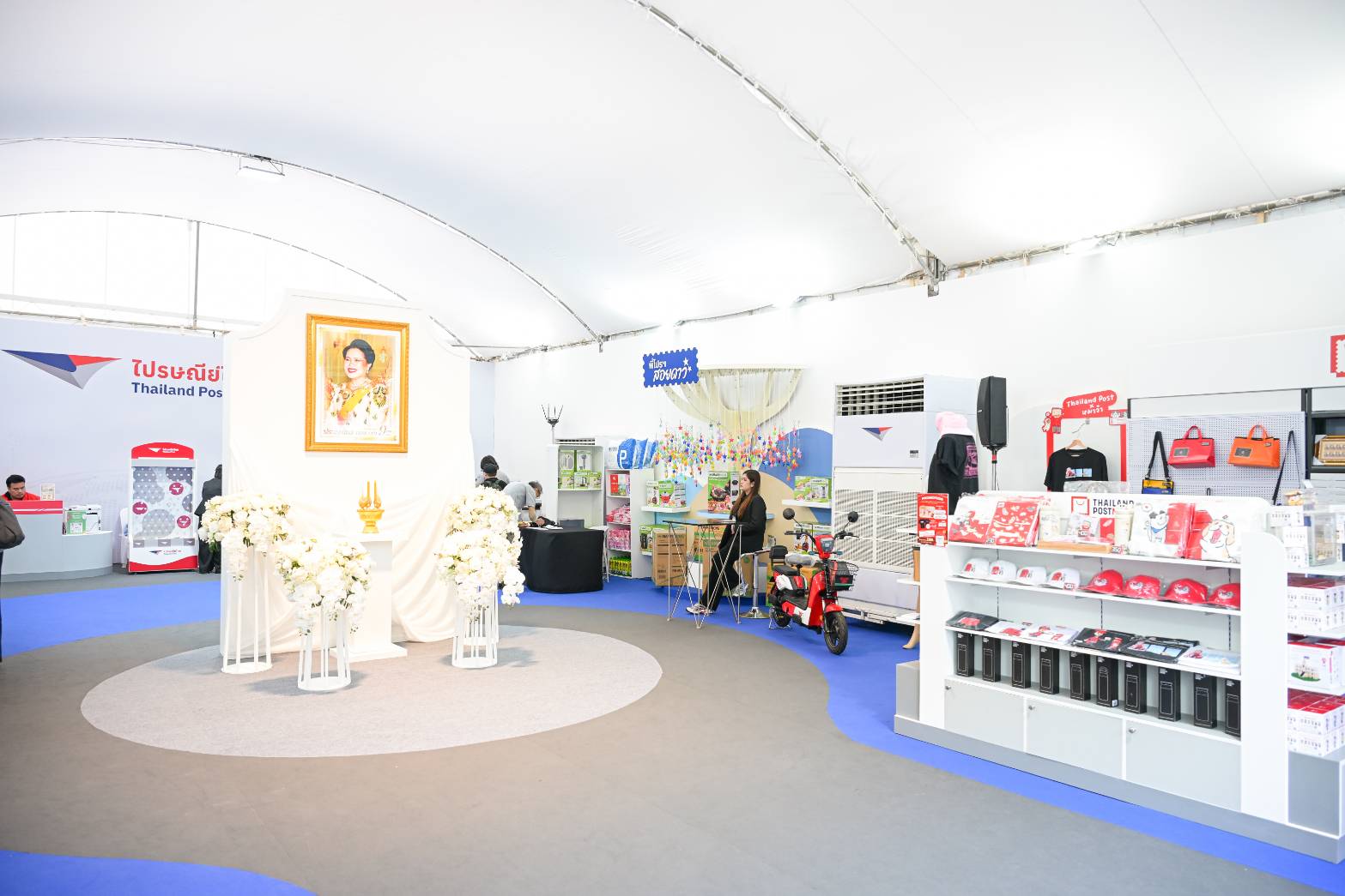 นอกจากนี้ ภายในร้านยังนำสินค้าชุมชนจากทั่วประเทศที่คัดสรรจากแพลตฟอร์ม ThailandPostMart ทั้งอาหาร ของใช้ประจำบ้าน สินค้าเกษตรแปรรูป ตลอดจนของดีประจำจังหวัดที่เหมาะสำหรับเป็นของขวัญที่ส่งเสริมชุมชนและผู้ประกอบการไทยให้มีเวทีจำหน่ายสินค้ากับผู้เข้ามาเที่ยวงานจำนวนมาก ในส่วนของบริการไปรษณีย์ก็ยังเปิดให้บริการเต็มรูปแบบ ไม่ว่าจะเป็นการรับฝากส่งสิ่งของทั่วไป การรับชำระเงิน รวมถึงบริการยอดนิยมอย่าง EMS JUMBO ที่เพิ่มความสะดวกให้ผู้มาร่วมงานสามารถฝากส่งสิ่งของขนาดใหญ่ เช่น รถจักรยาน ตู้เย็น หรือเครื่องปรับอากาศ ด้วยอัตราค่าบริการพิเศษลด 15% เฉพาะภายในงานเท่านั้น เพื่อช่วยอำนวยความสะดวกให้ประชาชนกลับบ้านแบบสบายตัวและไม่ต้องกังวลเรื่องการขนส่ง