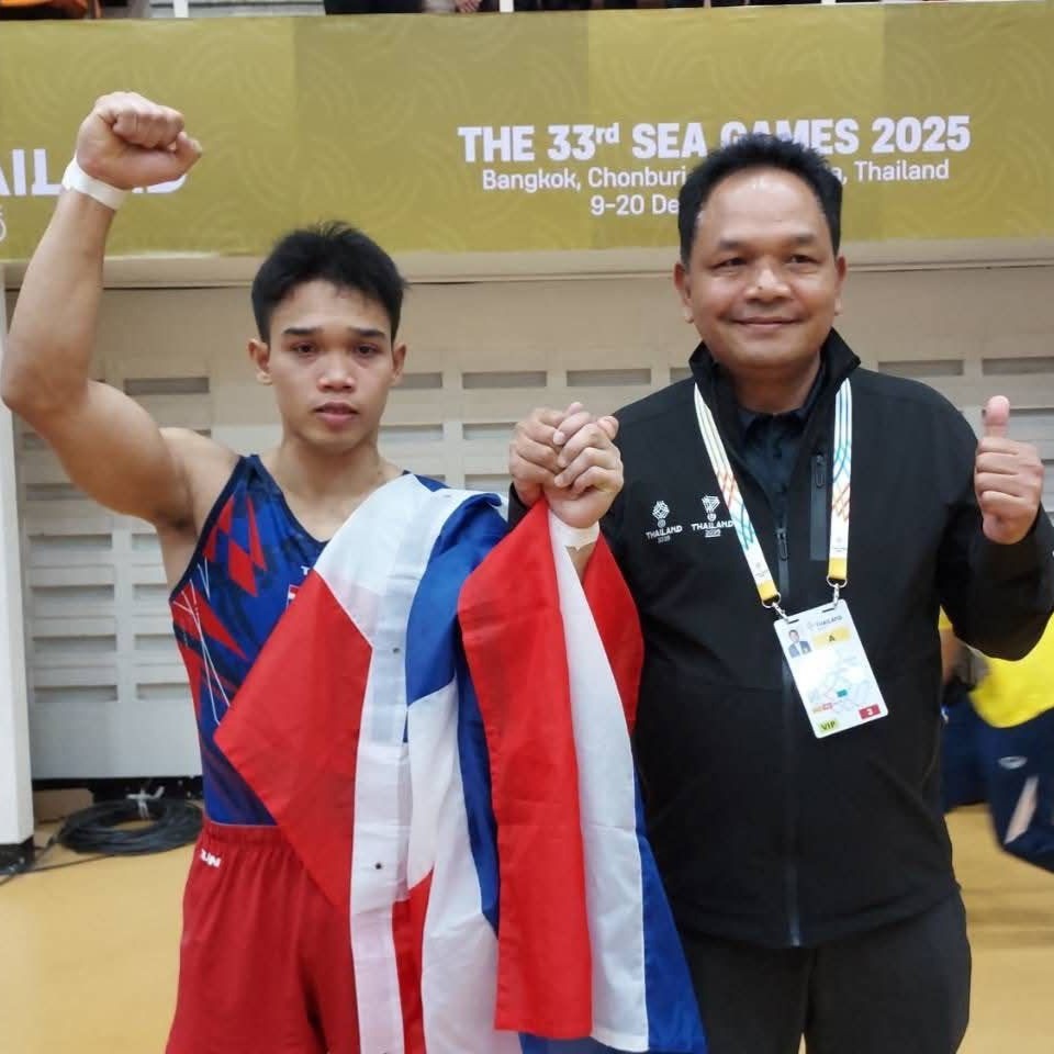 การแข่งขันยิมนาสติก ในมหกรรมกีฬาซีเกมส์ ครั้งที่ 33 ที่ ยิมเนเซี่ยม 5 ภายในมหาวิทยาลัยธรรมศาสตร์ ศูนย์รังสิต จ.ปทุมธานี เมื่อวันที่ 11 ธันวาคม 2568 ประเภทFloor Exercise ชาย