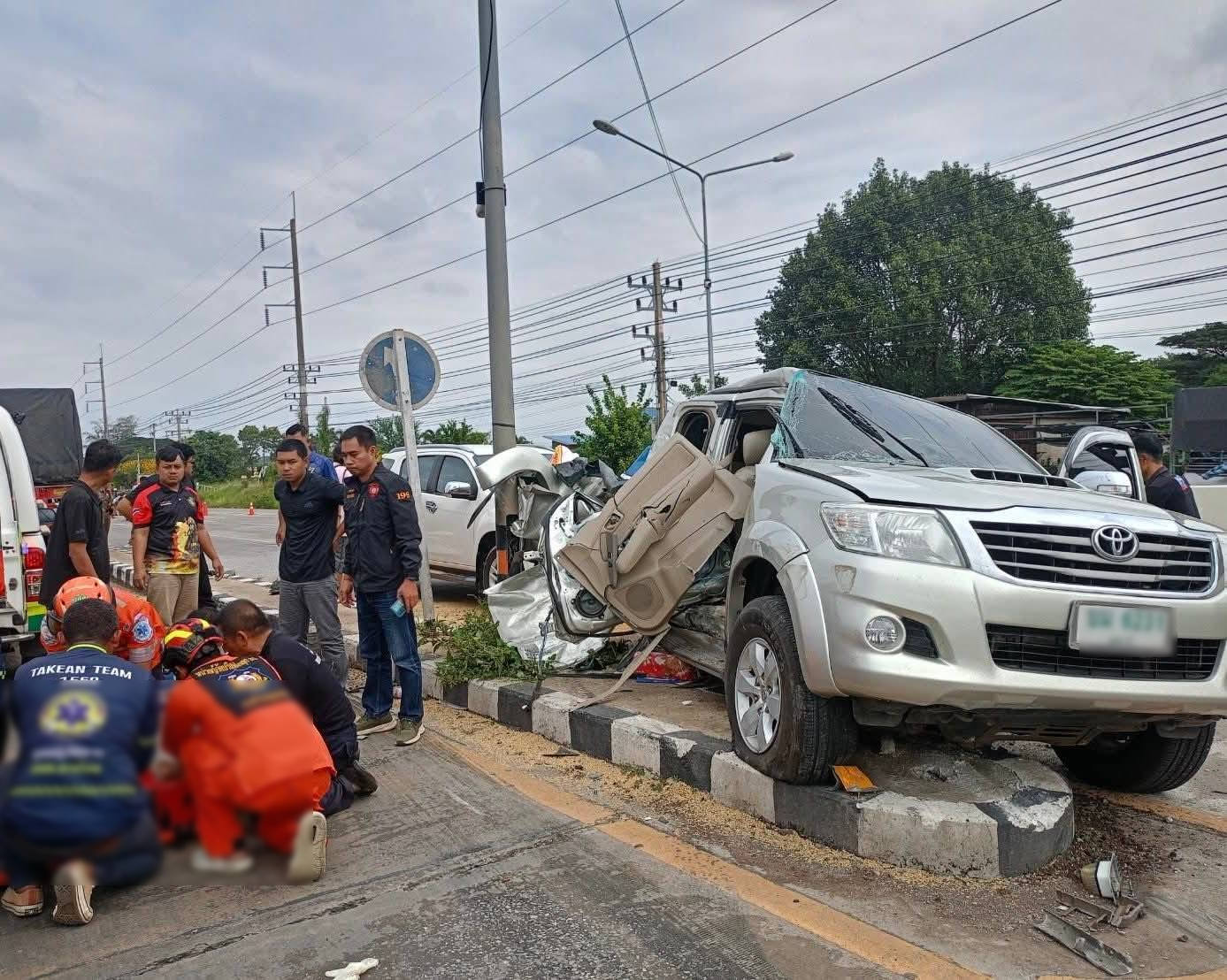 จ.นครราชสีมา รถกระบะชนกับรถพ่วง กลางถนนหมายเลข 201 มีผู้บาดเจ็บ 2 และเสียชีวิต 1 รายที่ รพ.