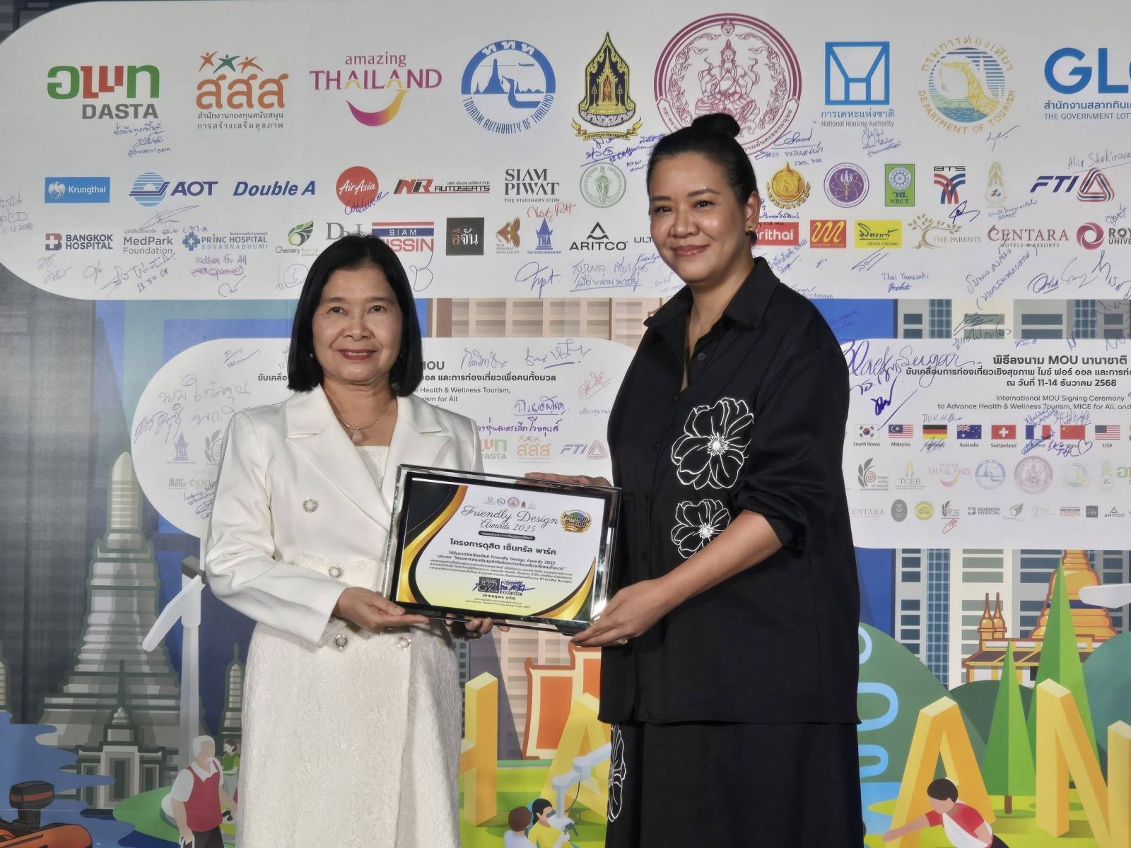 พิธีเปิดงานจัดขึ้นในวานนี้(พฤหัสบดีที่ 11 ธันวาคม 2568) ได้รับเกียรติจากผู้บริหารทั้งภาครัฐและเอกชน ร่วมกันสั่นกระดิ่ง “เปิดประตูเมืองอารยสถาปัตย์ ขจัดความเหลื่อมล้ำในสังคม” เพื่อเป็นสัญลักษณ์ของการขับเคลื่อนประเทศไทยสู่เมืองอารยสถาปัตย์ เมืองที่ไม่ทิ้งใครไว้ข้างหลัง เมืองสุขภาพดี และเมืองท่องเที่ยวเพื่อคนทั้งมวล ร่วมสร้างการรับรู้ว่าทุกคน ทุกกลุ่มวัยและทุกสภาพร่างกาย ไม่ว่าจะเป็นผู้สูงอายุ ผู้ป่วยพักฟื้น มนุษย์ล้อและผู้พิการ รวมถึงครอบครัวที่มีเด็กเล็กต้องใช้รถเข็นเด็ก ก็สามารถเข้าถึงได้ ใช้ประโยชน์ได้ ในตึกอาคาร สถานที่ แหล่งท่องเที่ยว ระบบขนส่งมวลชนและบริการสาธารณะต่างๆ โดยสะดวก ปลอดภัย ทันสมัย เป็นธรรม ทั่วถึง เท่าเทียม และทัดเทียมกับนานาอารยประเทศทั่วโลก โดย รองปลัดกระทรวงการพัฒนาสังคมและความมั่นคงของมนุษย์ ให้เกียรติมอบรางวัล Friendly Design Awards 2025 ด้วย