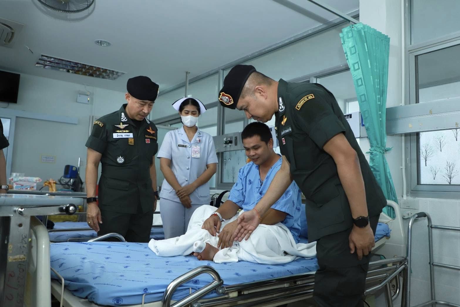 จากนั้นเดินทางไปเยี่ยมตำรวจตระเวนชายแดน และทหารที่ได้รับบาดเจ็บ ที่รักษาตัวที่โรงพยาบาลสรรพสิทธิประสงค์ ก่อนเดินทางมอบสิ่งของบำรุงขวัญ กก.ตชด.12 และกองร้อย ตชด.125