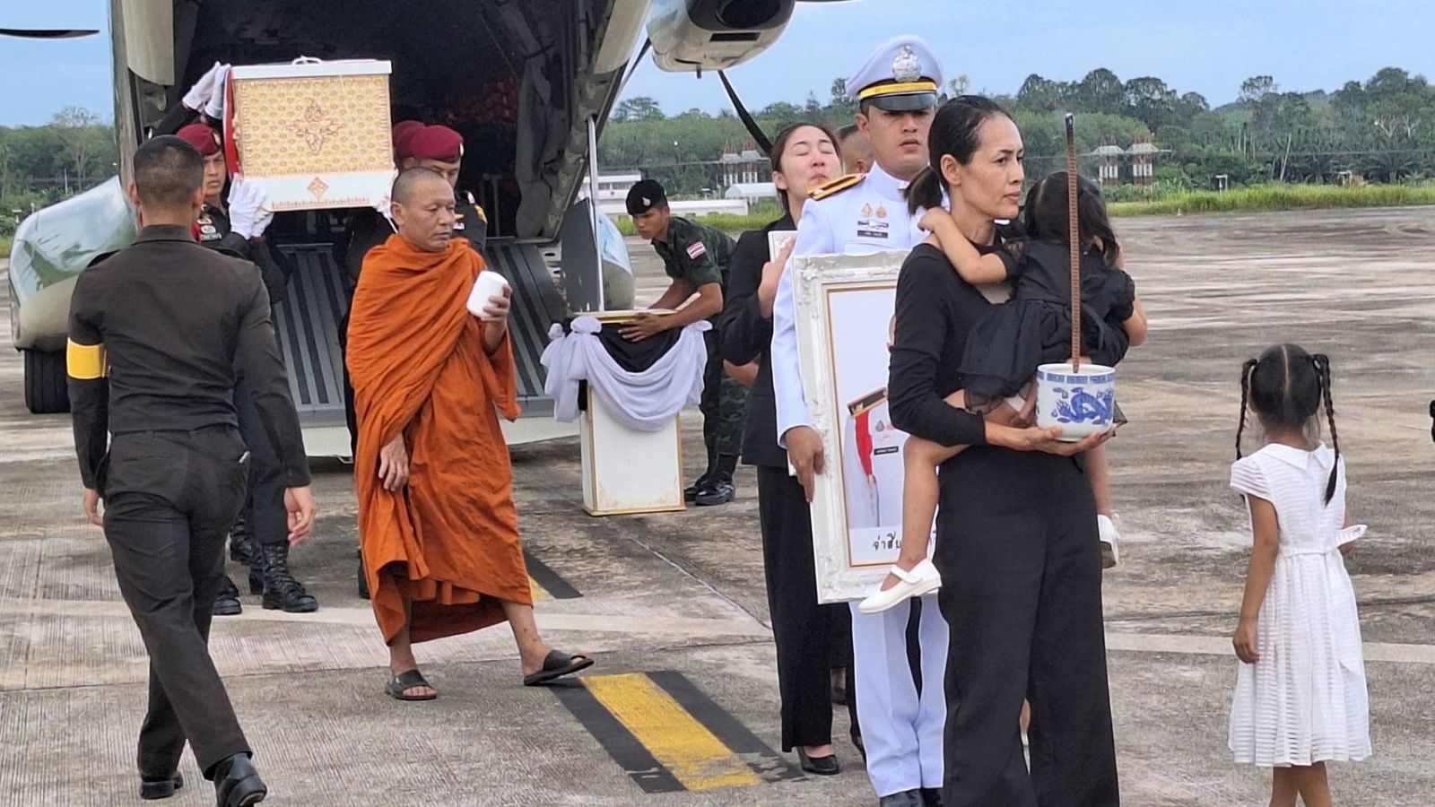 สำหรับ จ่าสิบเอกทวีรัตน์ รัตนบุรี อายุ 37 ปี ตำแหน่งหัวหน้าส่วนระวังป้องกัน ชุดจู่โจม สังกัดกองพันจู่โจม เสียชีวิตจากอาวุธสงครามจากฝ่ายตรงข้ามบริเวณยอดเนิน 677 ช่องอานม้า อ.น้ำยืน จ.อุบลราชธานี เมื่อวันที่ 13 ธันวาคม 2568 โดยมีการตั้งศพบำเพ็ญกุศลสวดพระอภิธรรม ณ วัดถ้ำโกบ ต.หน้าเขา อ.เขาพนม จ.กระบี่ และกำหนดพระราชทานเพลิงศพในวันที่ 18 ธันวาคม 2568 เวลา 16.00 น.