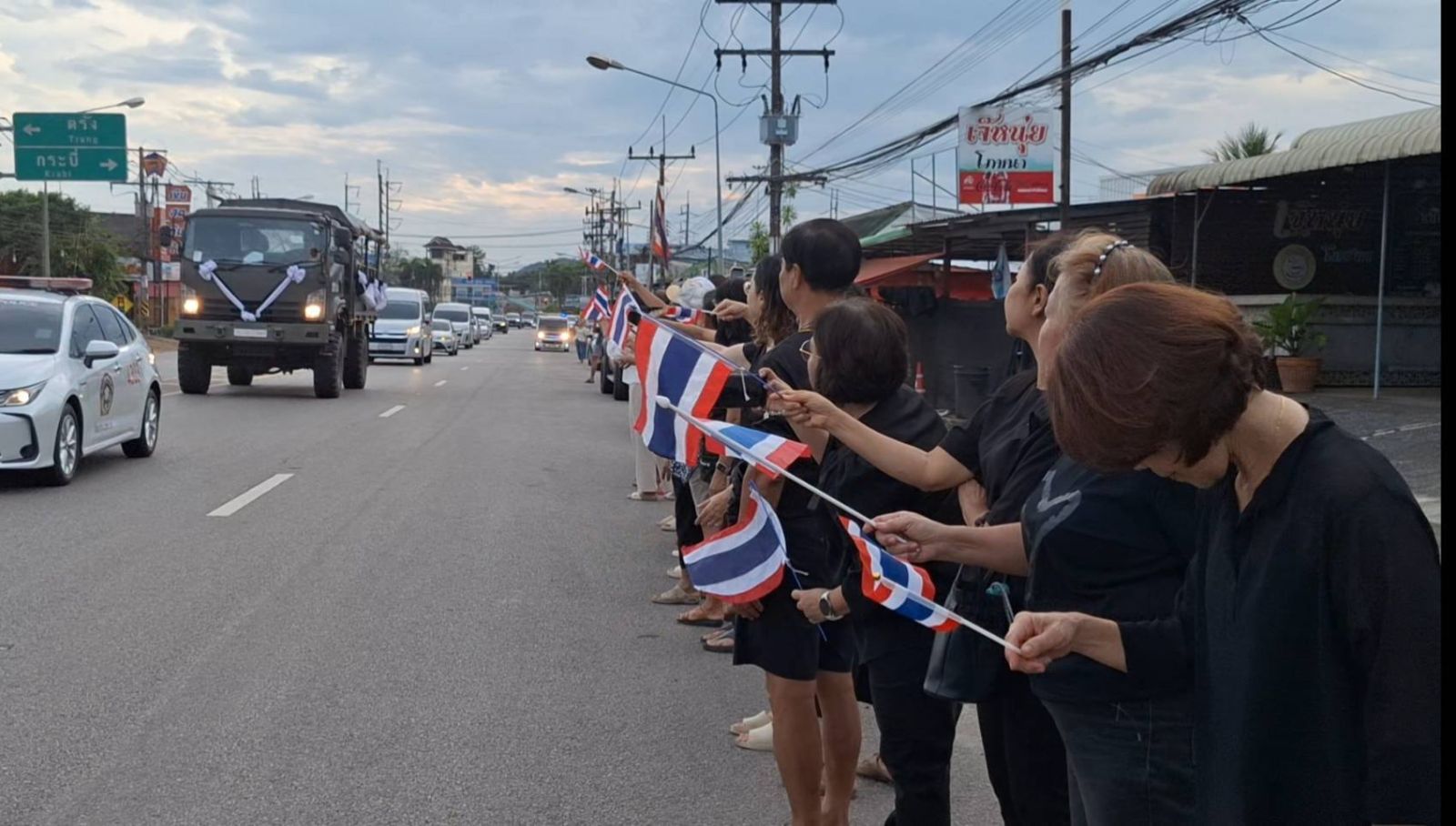 เมื่อเครื่องบินลำเลียงศพถึงลานจอดท่าอากาศยานนานาชาติกระบี่ จากนั้เจ้าหน้าที่ได้นำศพจ่าสิบเอก ทวีรัตน์ รัตนบุรี ลงจากท้ายเครื่องบิน ได้มีการสรุปสถานการณ์ และกล่าวสดุดี ประกอบพิธีทางศาสนา กองทหารเกียรติยศสั่งทำความเคารพ พลแตรเดี่ยวเป่าแตรคำนับ 1 จบ จากนั้นเจ้าหน้าที่ได้เคลื่อนศพผ่านประธาน ผู้บังคับบัญชา และผู้เข้าร่วมพิธี เชิญศพขึ้นตั้งบนรถยนต์ ขบวนรถยนต์เชิญศพเคลื่อนออกจากท่าอากาศยานนานาชาติกระบี่ ไปยังวัดถ้ำโกบ ต.หน้าเขา อ.เขาพนม จ.กระบี่ เพื่อประกอบพิธีพระราชทานน้ำหลวงอาบศพ พิธีเชิญพวงมาลาหลวงพระราชทาน และพวงมาลาประทานวางหน้าหีบศพ และพิธีสวดพระอภิธรรมศพ ตามลำดับต่อไป ซึ่งในขณะที่ขบวนรถผ่านย่านชุมชนเหนือคลอง ได้มีประชาชนเข้าแถวยืนโบกธงชาติไทยเพื่อแสดงความอาลัยและสดุดีด้วย
