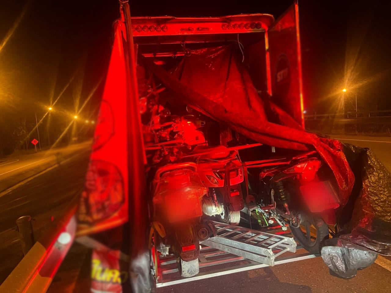 เจ้าหน้าที่วางแผนสกัดจับและสามารถควบคุมรถต้องสงสัยทั้ง 2 คันได้ คันแรกมีชายอายุ 22 ปี เป็นคนขับ ตรวจพบรถจักรยานยนต์ 9 คัน ส่วนอีกคันมีชายอายุ 30 ปี เป็นคนขับ และชายอายุ 19 ปี ตรวจพบรถจักรยานยนต์ 6 คัน ผู้ต้องหามีท่าทีพิรุธ ให้การไม่ชัดเจน ก่อนรับสารภาพว่ารับจ้างขนรถโดยติดต่อผ่านแอปพลิเคชัน LINE ได้ค่าจ้างคันละประมาณ 1,500 บาท และเคยทำมาแล้วหลายครั้ง