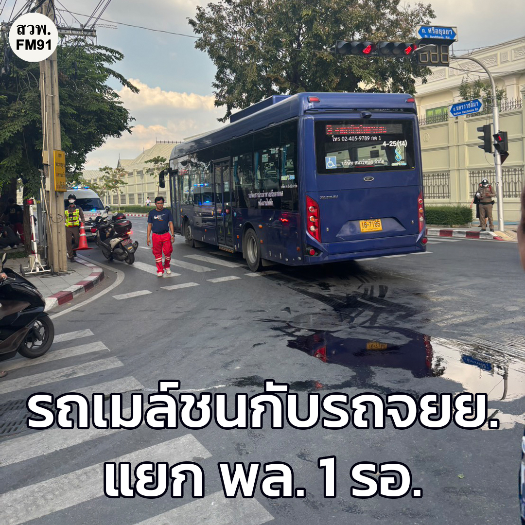 17 ธ.ค. 68 เวลา 15.40 น. บริเวณแยก พล.1 รอ. (ถ.ศรีอยุธยา ตัด ถ.นครราชสีมา) รถเมล์ชนกับรถจยย. มีผู้บาดเจ็บ 1 ราย และมีคราบน้ำมันหกรดพื้นผิวจราจร อยู่ระหว่างทำความสะอาด