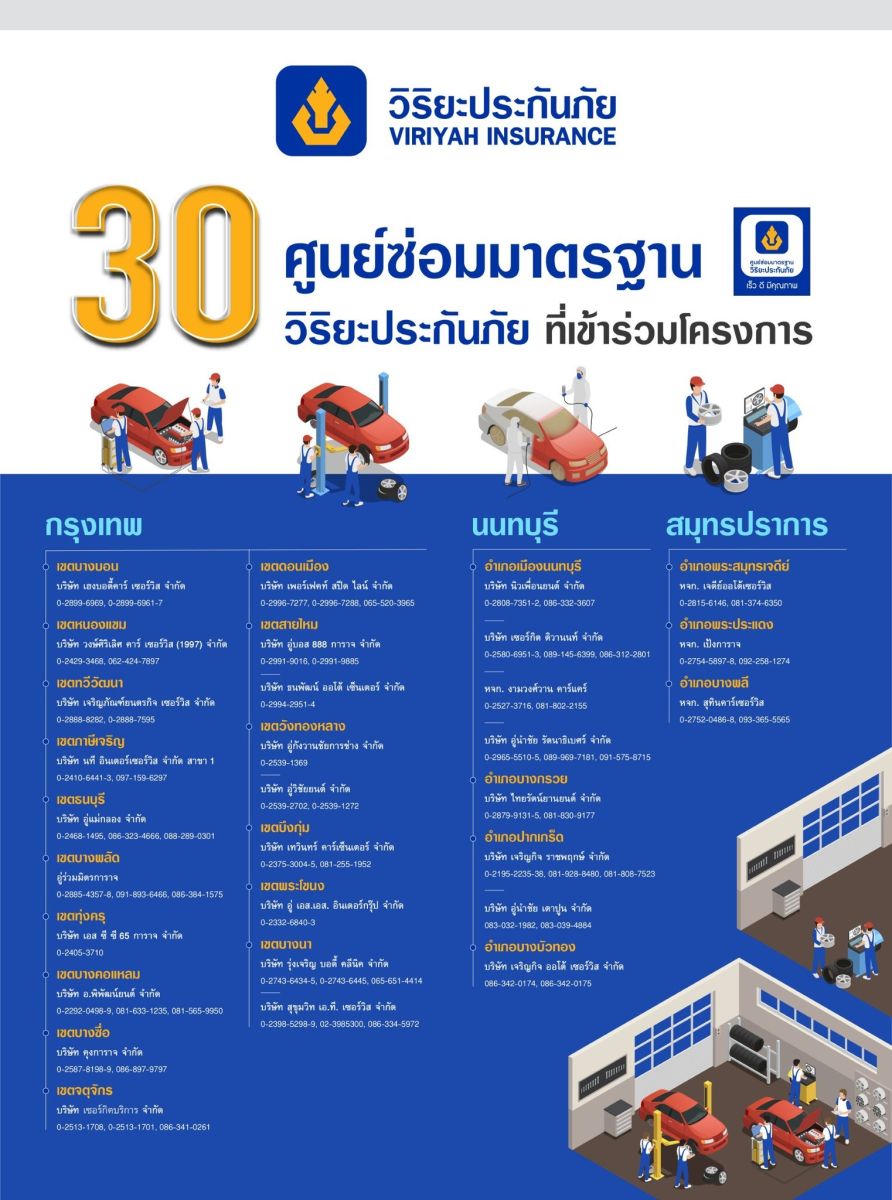 วิริยะประกันภัย ร่วมกับ กรมการขนส่งทางบก จัดกิจกรรม “ตรวจรถฟรี ขับขี่ปลอดภัย” บูรณาการสร้างความปลอดภัยบนท้องถนนและอำนวยความสะดวกให้แก่ประชาชนที่เดินทางไกล ในช่วงเทศกาลปีใหม่ 2569 โดยให้บริการตรวจสภาพรถยนต์เบื้องต้นฟรี 20 รายการ พร้อมรับ กระเป๋าผ้าแคนวาส เป็นของที่ระลึกฟรี ! เมื่อนำรถมาใช้บริการ ณ ศูนย์ซ่อมมาตรฐานวิริยะประกันภัย ในพื้นที่กรุงเทพฯ และปริมณฑล จำนวน 30 แห่ง ตั้งแต่วันนี้ ถึง 26 ธันวาคม 2568