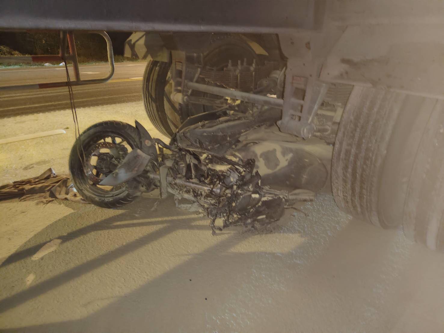 ที่เกิดเหตุ พบรถเทรลเลอร์ ฮีโน่ สีขาว ป้ายทะเบียน พระนครศรีอยุธยา จอดอยู่ที่เลนซ้าย บริเวณใต้ท้องรถ พบรจักรยานยนต์ ยังไม่ทราบยี่ห้อ ป้ายทะเบียน กทม. สภาพพังเสียหายทั้งคัน ห่างออกไปพบร่างผู้เสียชีวิต 1 ราย ตรวจสอบเอกสาร เป็นชายไทย อายุประมาณ 21 ปี ในส่วนของสาเหตุที่แท้จริงอยู่ที่การสอบสวนของเจ้าหน้าที่ตำรวจ สภ.คลองห้า