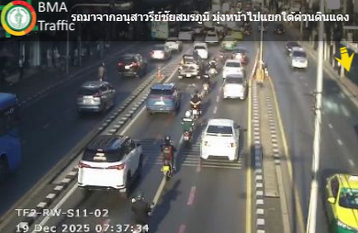 07.37 น. ถนนดินแดง จากใต้ด่วนดินแดง - ถนนราชวิถี เข้าอนุสาวรีย์ชัยสมรภูมิ ติดขัด รถชะลอตัวจุดเบี่ยงแนวก่อสร้าง หน้ารพ.ราชวิถี และตอนนี้ รถลงด่านอนุสาวรีย์ชัยสมรภูมิ เริ่มติดขัดสะสมแล้ว