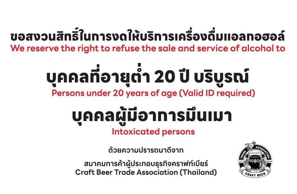 สมาคมฯคราฟท์เบียร์ สนับสนุนการดื่มอย่างรับผิดชอบ จึงขอเชิญชวนร้านค้าและผู้ประกอบการทุกท่าน ช่วยกันรณรงค์และยกระดับวัฒนธรรมการดื่มที่มีคุณภาพให้กับอุตสาหกรรมของเราไปด้วยกัน