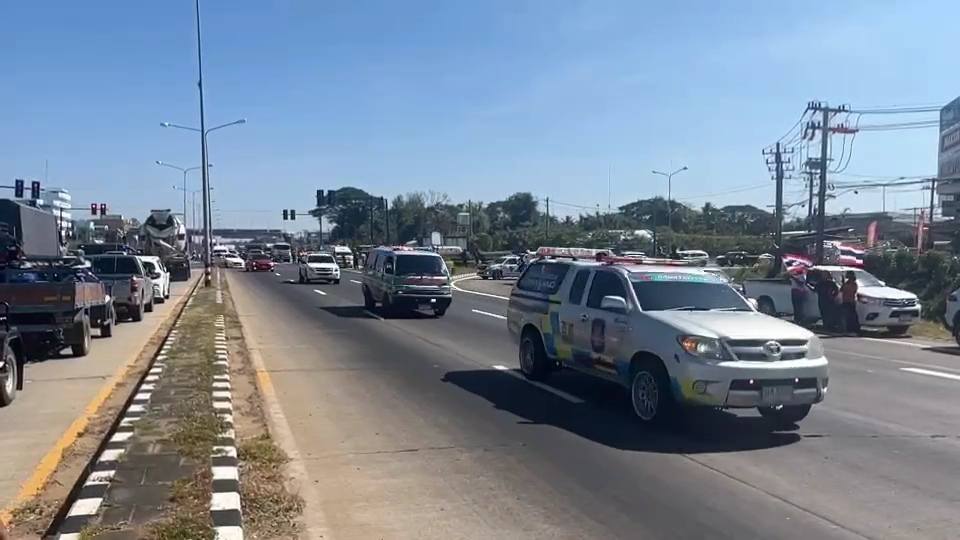 ตำรวจทางหลวงจังหวัดสุรินทร์ ปฏิบัติภารกิจนำขบวนเคลื่อนย้ายร่าง จ่าสิบเอก สำเริง คลังประโคน ทหารผู้เสียชีวิตจากเหตุปะทะบริเวณชายแดนไทย–กัมพูชา เพื่อส่งร่างกลับสู่ภูมิลำเนาและประกอบพิธีทางศาสนาอย่างสมเกียรติ