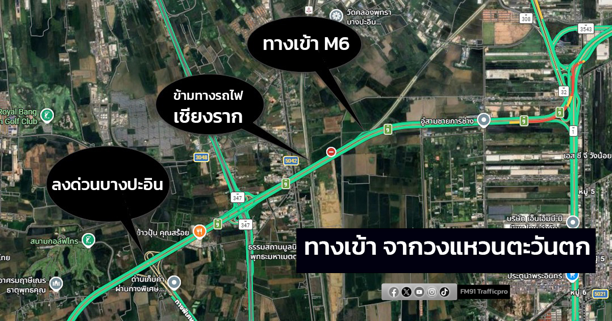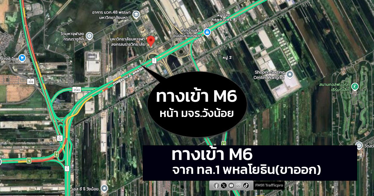 ทางเข้า มอเตอร์เวย์ M6 บางปะอิน จาก ทล.1 พหลโยธิน ขาออก สังเกต ซ้ายมือ มจร. วังน้อย
